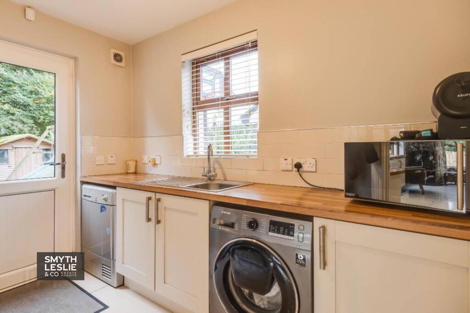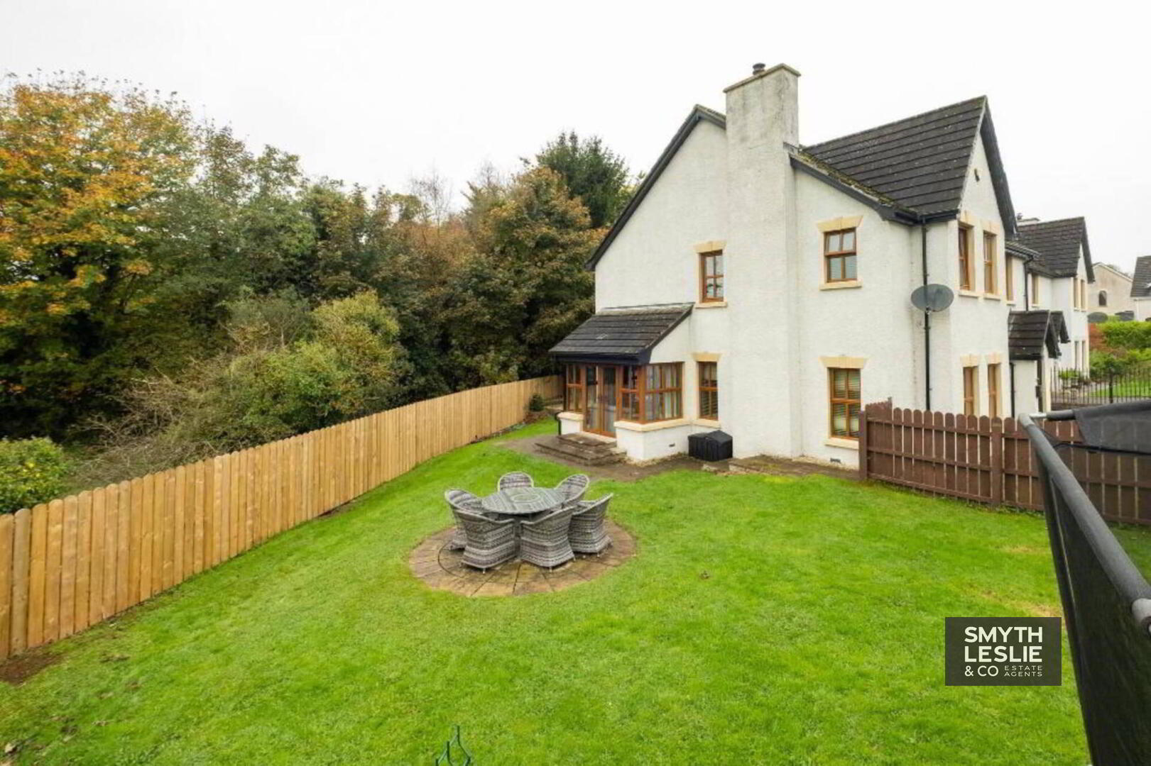 Externally, the property offers excellent outdoor space designed for both practicality and enjoyment. To the side, a tarmac driveway provides generous off-street parking, while the surrounding gardens to the side and rear create a delightful setting for family living. The spacious lawn and paved patio area offer ideal spaces for outdoor relaxation, seamlessly blending with the home`s natural surroundings. To the rear, an extensively paved area provides superb versatility, perfect as a safe play space for children or an enclosed area for small pets. All of this is beautifully framed by the tranquil backdrop of mature woodland, enhancing the sense of privacy and connection with nature.