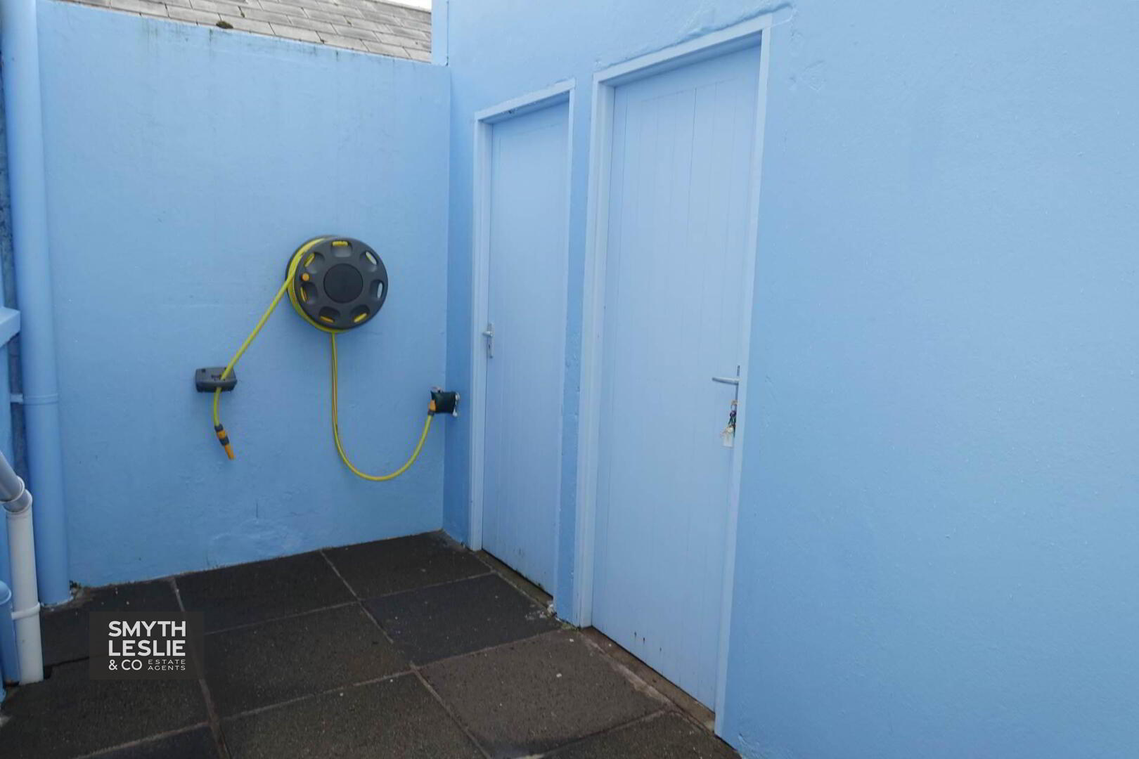 Externally, the property benefits from a practical and easily maintained outdoor layout. To the rear, there is a service yard with pedestrian access, providing useful space for bins, storage and everyday convenience. To the front, a designated parking area enhances the overall practicality of the home, ensuring straightforward town centre living with the added benefit of off-street parking, a valuable feature within such a central Enniskillen setting.