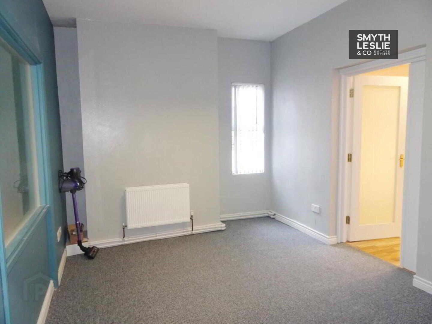 PVC exterior door, laminate floor.