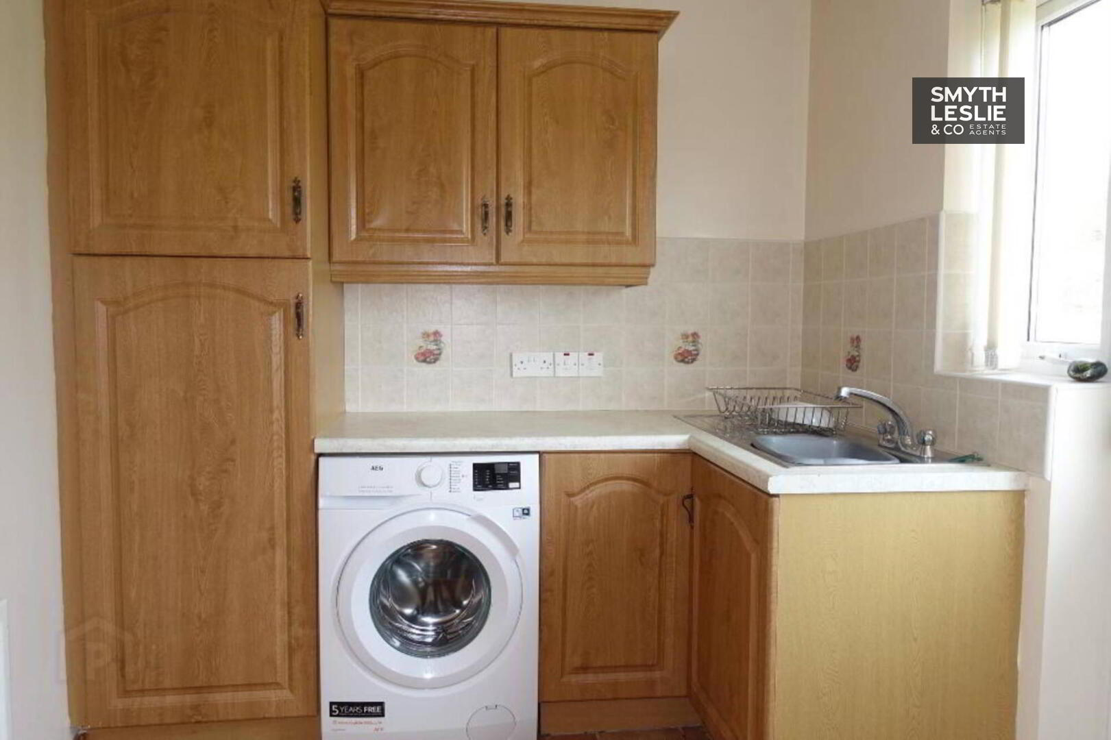 Fitted units, stainless steel sink unit, plumbed for washing machine, PVC exterior door with glazed inset, tile flooring & splash back