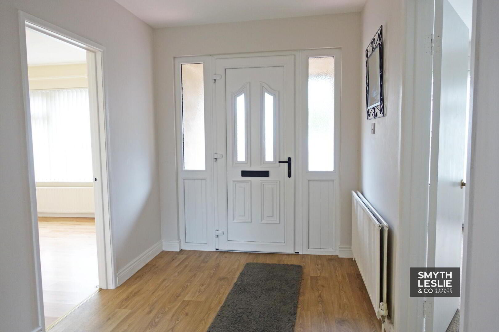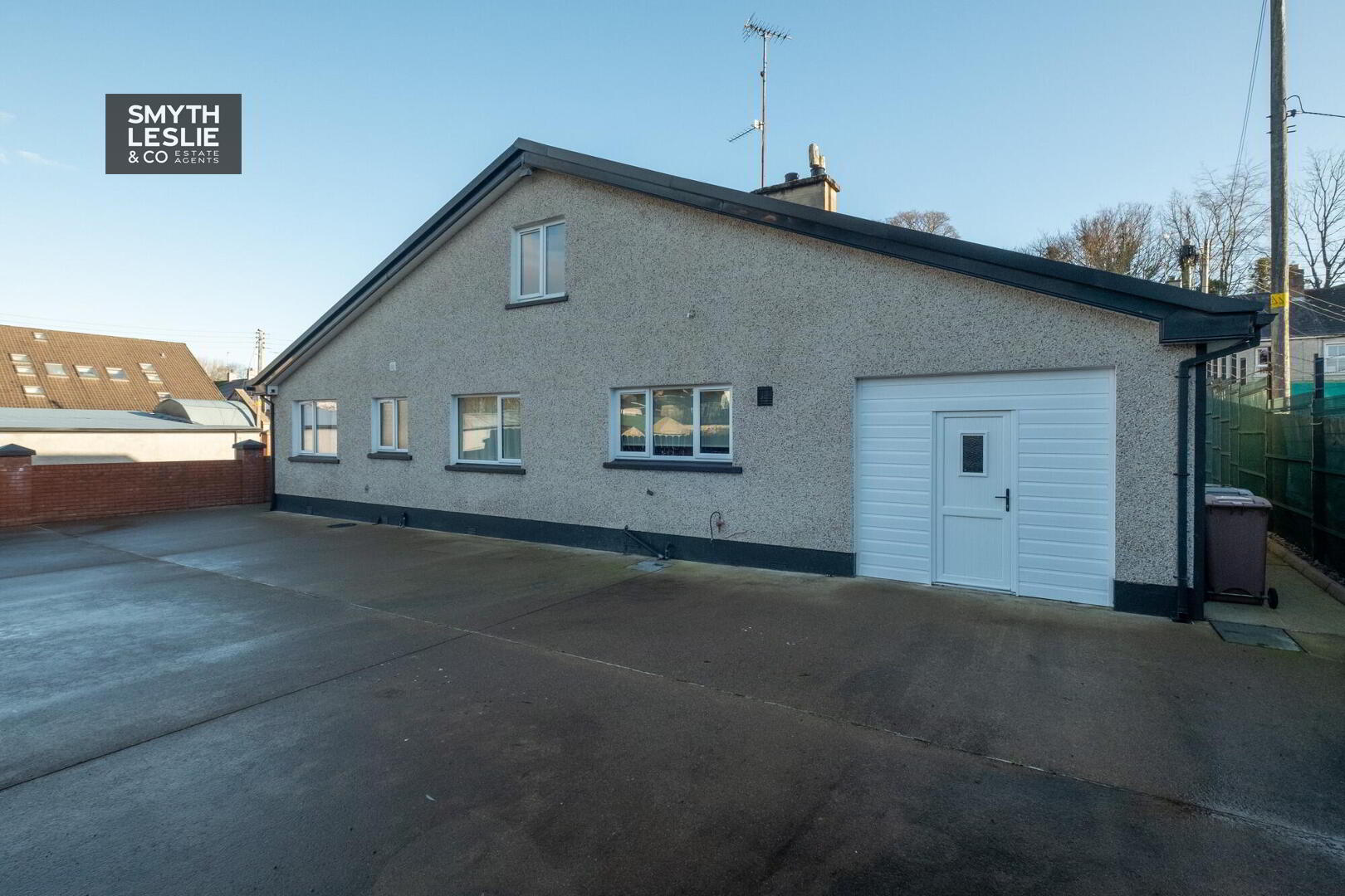 The property is complemented by its easily maintained grounds, which include convenient vehicular access and private parking directly off Rossorry Church Road. Mature shrubs frame the frontage, adding an attractive touch of greenery with minimal upkeep. To the rear, a discreet and tidy yard provides a sheltered outdoor space that is both practical and effortless to manage, perfectly aligning with the home’s overall low maintenance appeal.
