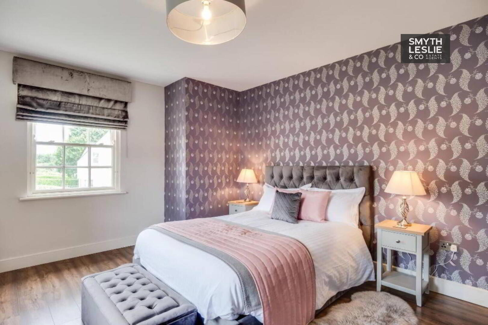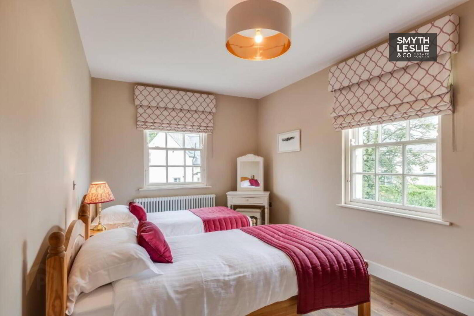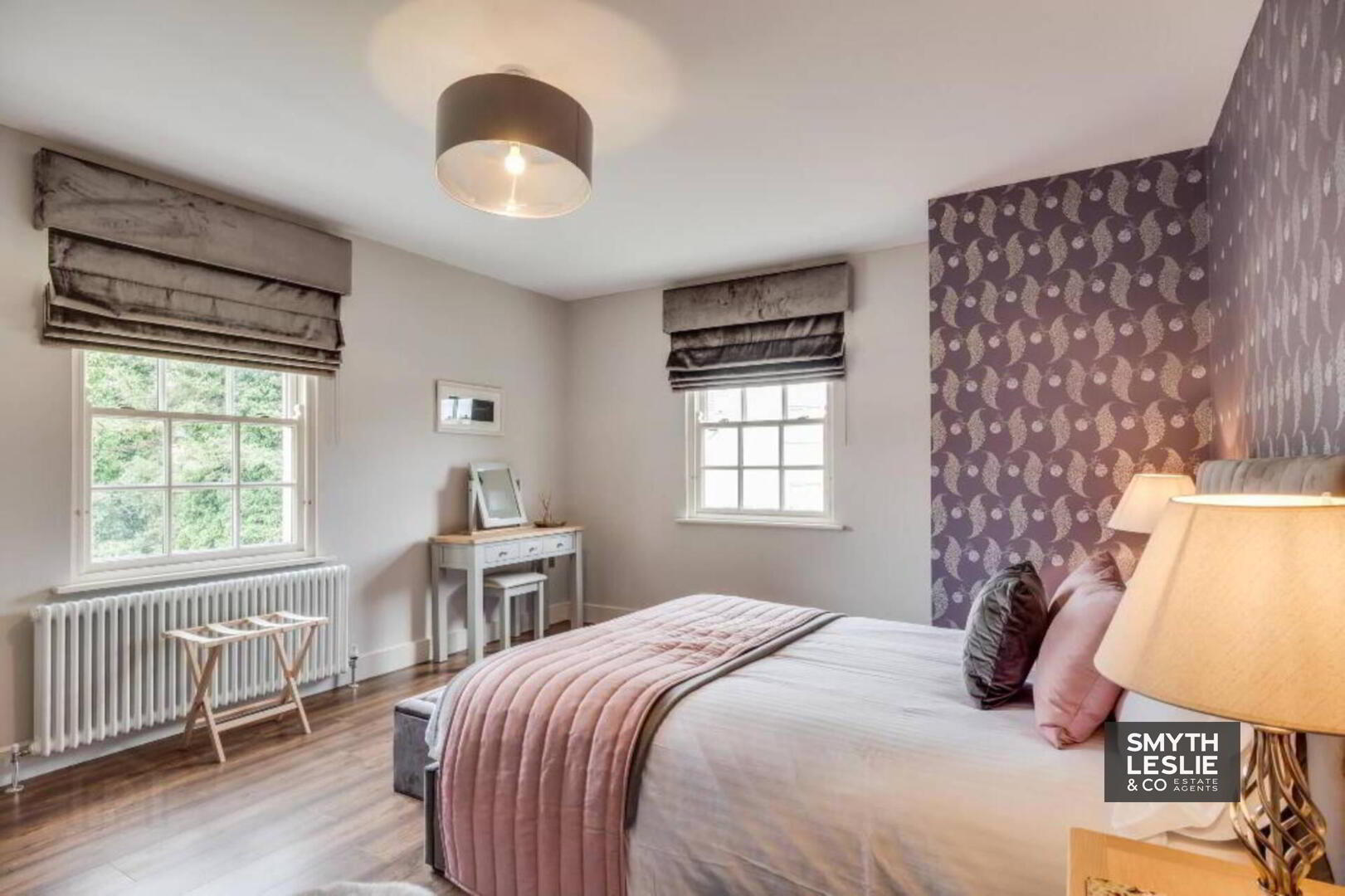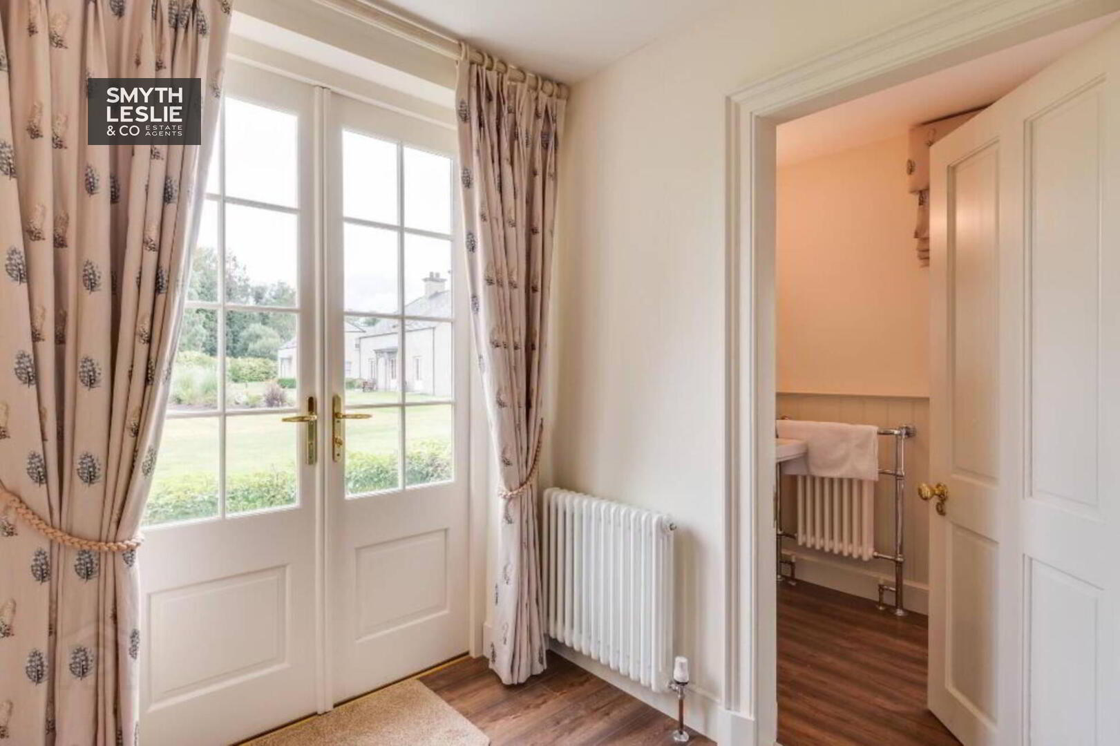 Fitted vanity unit, fitted wardrobes and storage, remote controlled electric roller blinds, laminate flooring, recessed lighting.