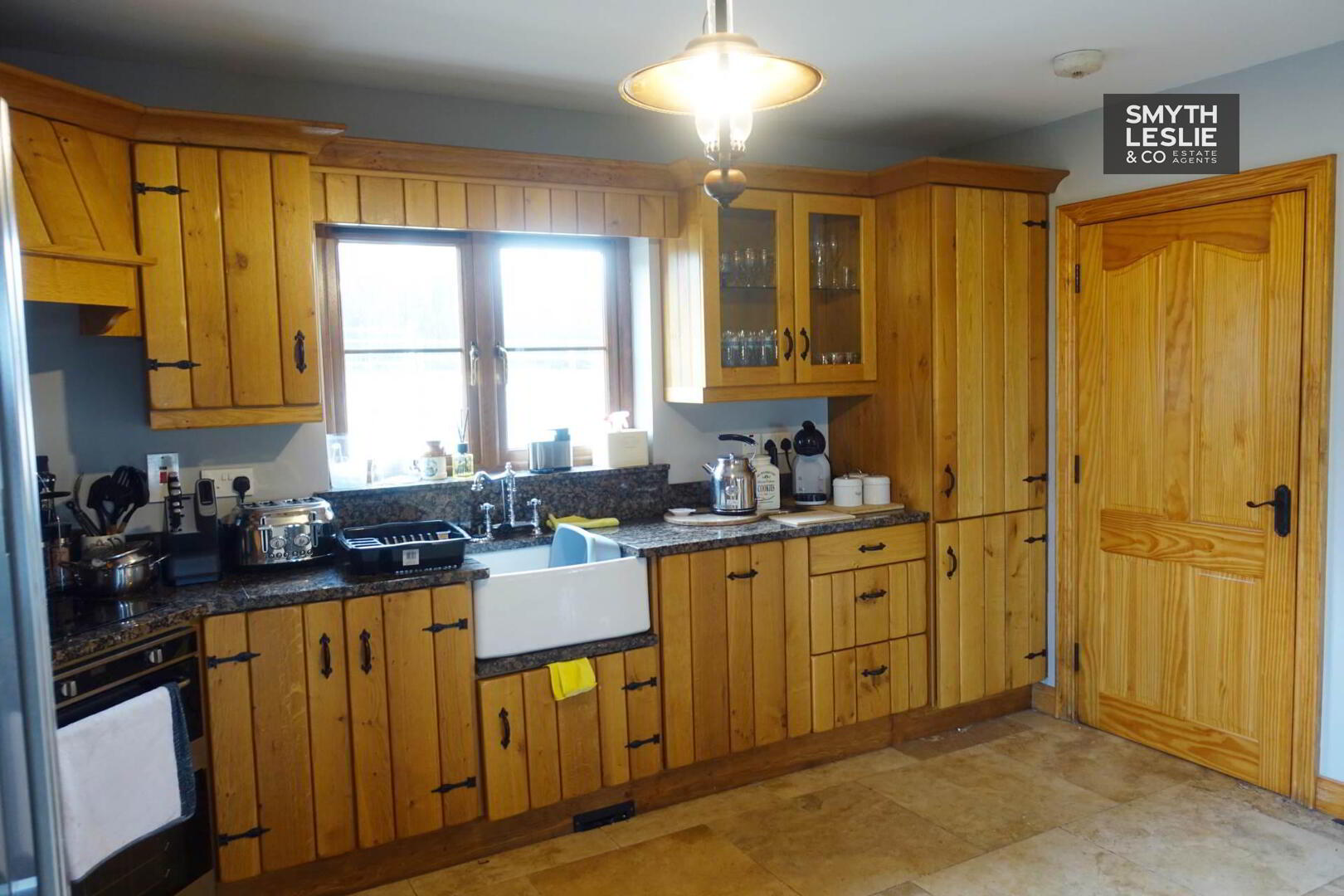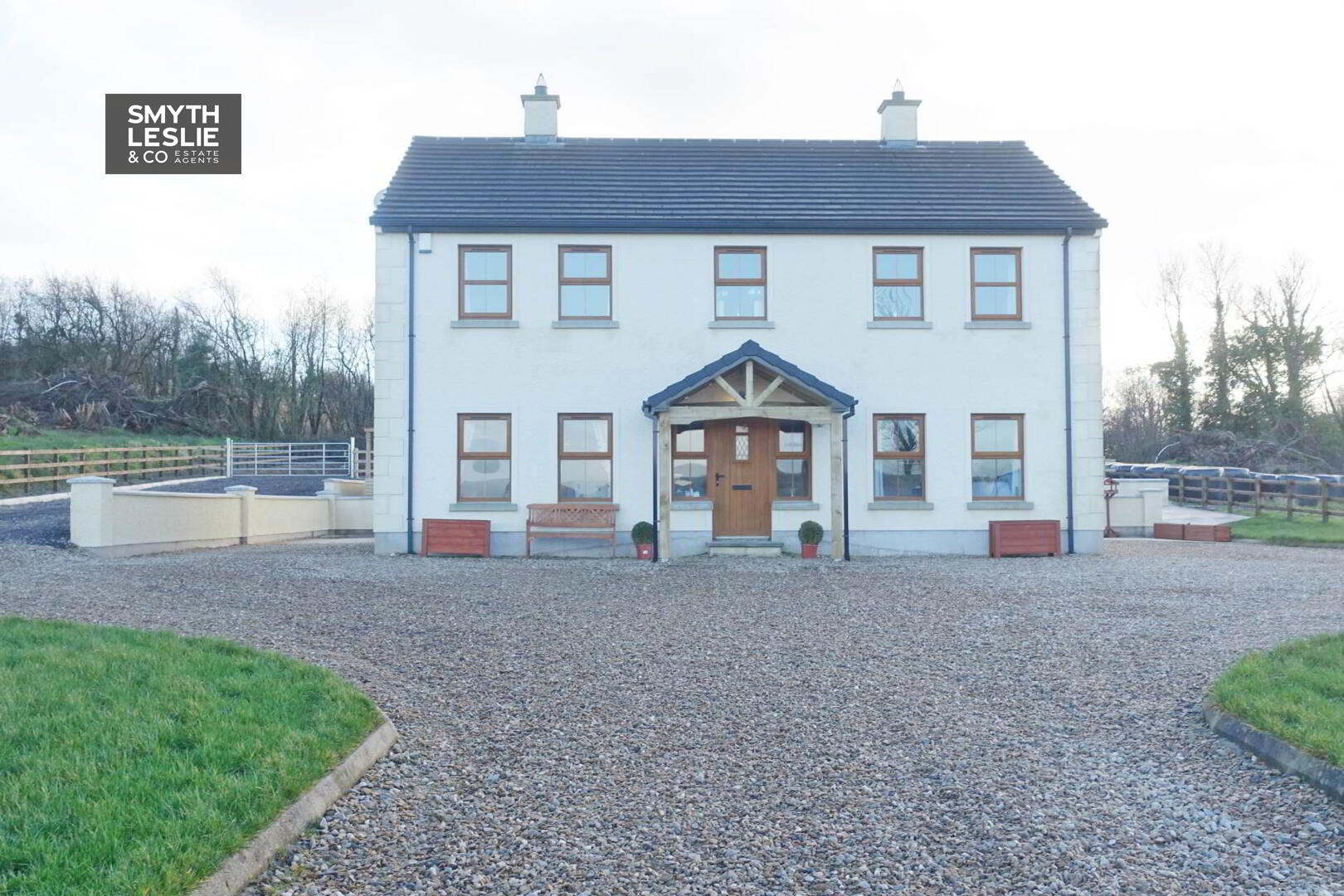This exceptional country residence occupies a most attractive rural position, set within an idyllic countryside and enjoying significant grounds that include a valuable circa 2 acre paddock. The accommodation is thoughtfully arranged over 2 floors and is centred around a superb open plan kitchen and dining area, featuring a striking stonework fireplace with stove that forms the natural heart of the home. The property provides 4 well proportioned bedrooms, including a convenient ground floor bedroom, offering flexibility for family living or guest accommodation. Externally, a spacious parking area and well laid out gardens provide excellent outdoor space that sits comfortably within the surrounding landscape. Despite its peaceful setting, the property is located only approximately 10 minutes drive from the village of Kesh and benefits from pleasing views towards the Donegal Mountains, combining rural seclusion with practical accessibility.