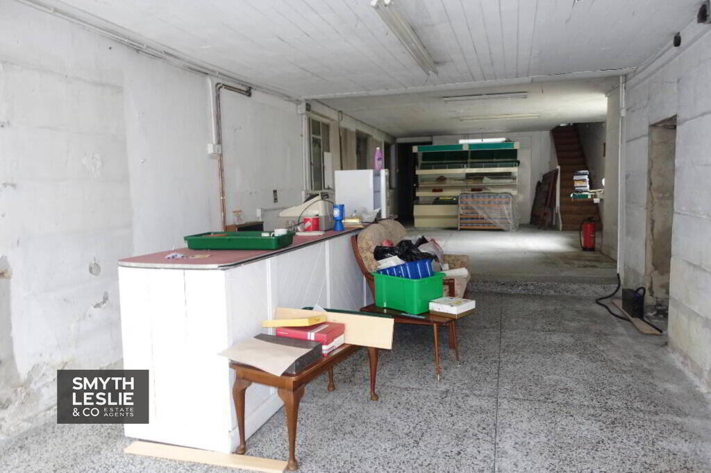 Offering a mix of residential and commercial premises that includes the original supermarket and shoe shop, the property affords an opportunity for a range of possibilities, assisted by its Main Street frontage, end terrace position and excellent rear access from Fair Green.