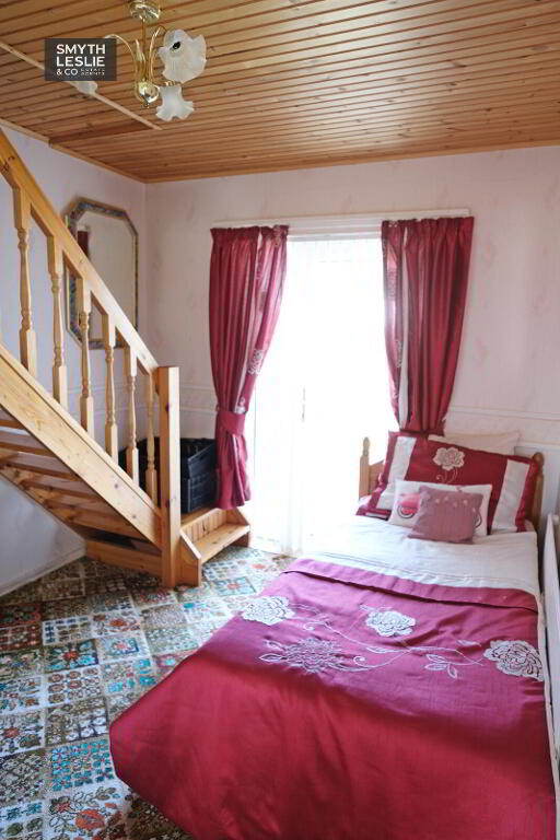 including steps up to attic/storage area, PVC exterior glazed door accessing rear garden, built in wardrobe with overhead storage, dado rail, pine ceiling.