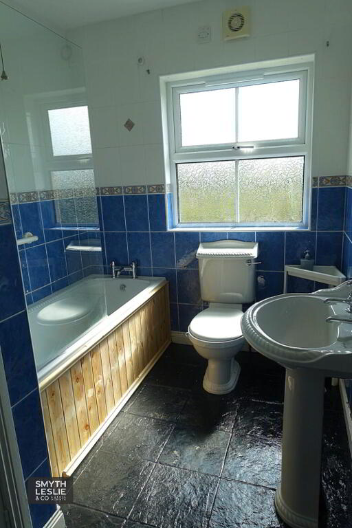 Bathroom: 11’5” x 6’4” Hotpress, white suite, electric shower over bath,