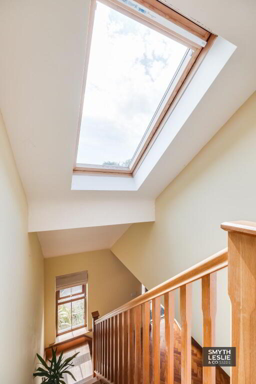 Oak floor, fitted oak shelving, feature window overlooking Lounge