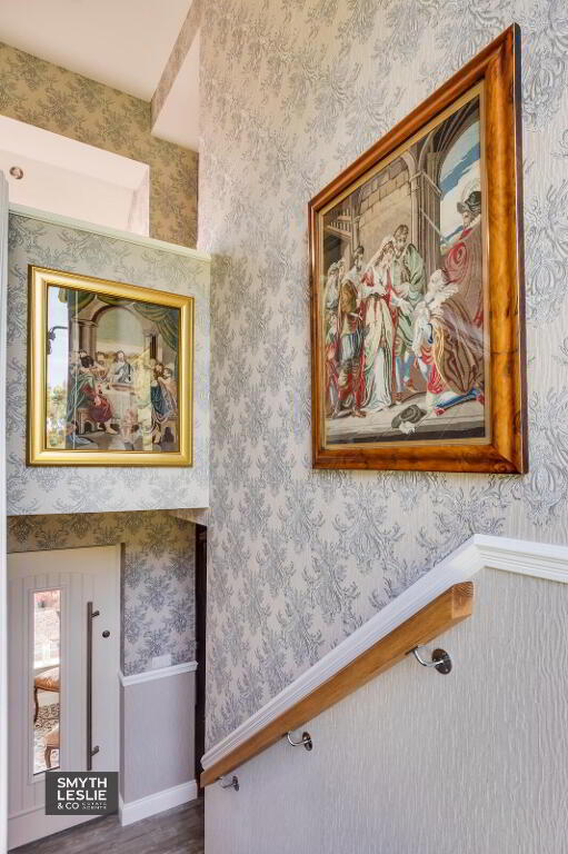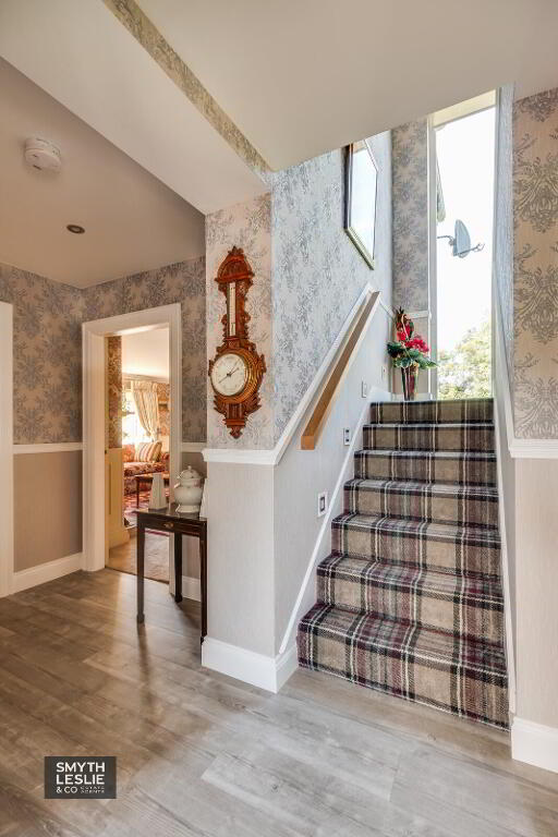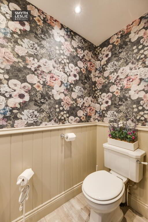 Laminate flooring, recessed lighting, dado rail, cloak room.
