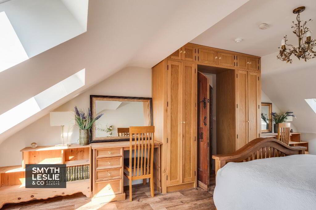 Traditional style solid wood door, fitted furniture including 2 no. wardrobes & dressing table.