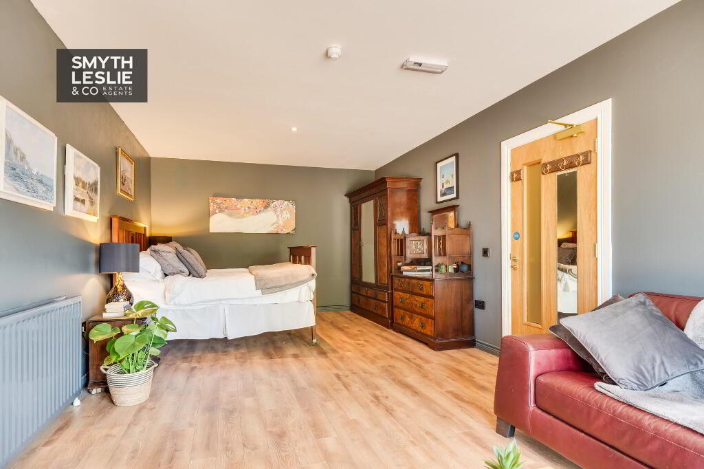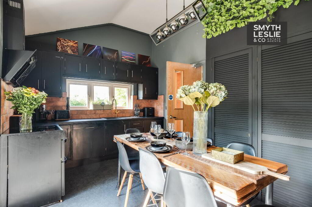 Nestling in a peaceful country setting, this modern two-storey property offers a bespoke design, comprising two well-appointed self contained apartments, each designed to reflects its serene country location with contemporary comfort and multiple functionality in mind. Whether you’re seeking a tranquil personal retreat afforded by the potential for adaption to a single dwelling, a multi-generational living space, or an income generating investment, this property offers exceptional flexibility, allowing for the ability to combine home and work life, highlighted by its recent use for multiple purposes, as a dwelling, AirBnB and photography studio.