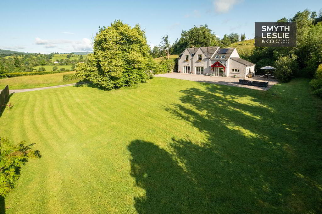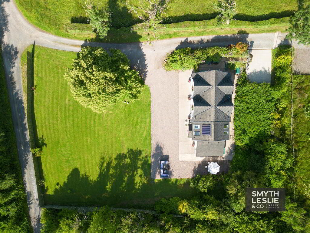 Driveway access from the Moybrone Road to secluded grounds with parking area to front and extensive south facing garden with expansive lawn.