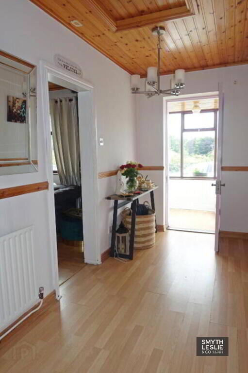 Laminate flooring, recessed lighting, tongue & groove panelled ceiling, cloaks cupboard.