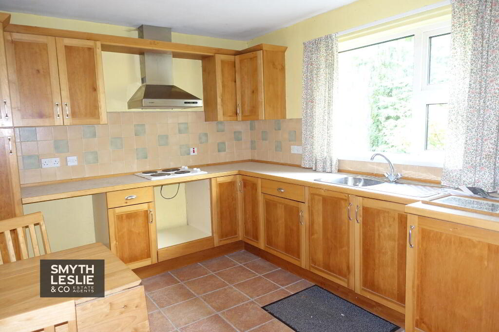 Fitted high & low level kitchen units, integrated hob, stainless steel sink unit, stainless steel extractor fan hood, plumbed for washing machine, hot press, tiled floor & splash back, OFCH boiler.
