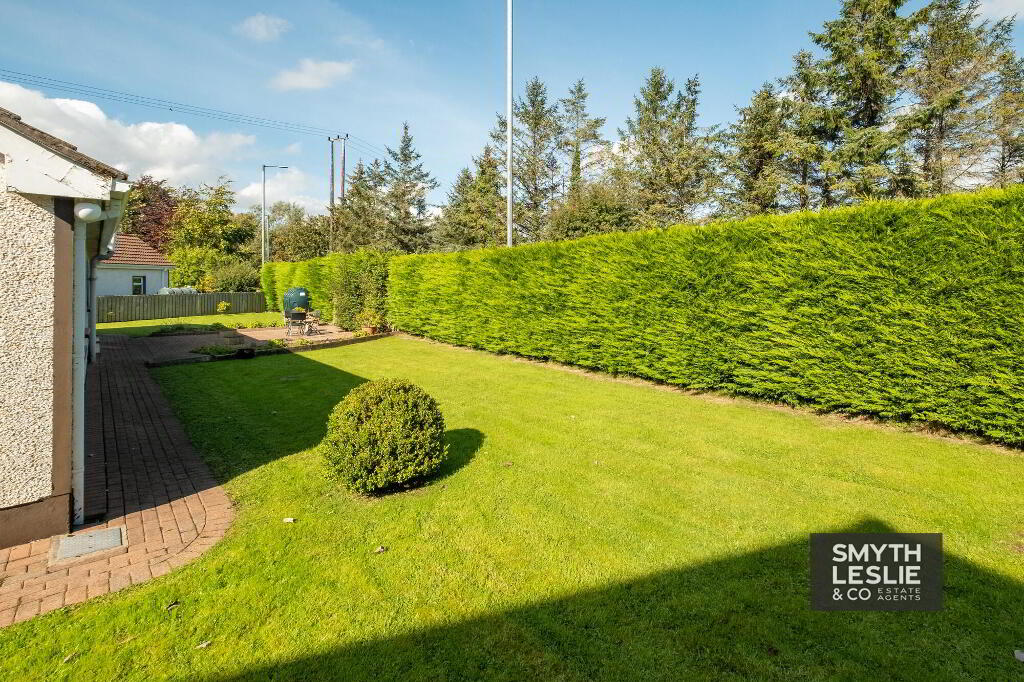 The property is set on mature and manageable grounds, approached by a tarmac driveway with parking area and lawn to the front, complemented by brickwork paved pathways. To the rear, an open garden offers a lawn with a brickwork paved patio area, surrounded by a selection of mature shrubs and trees that provide both character and privacy.