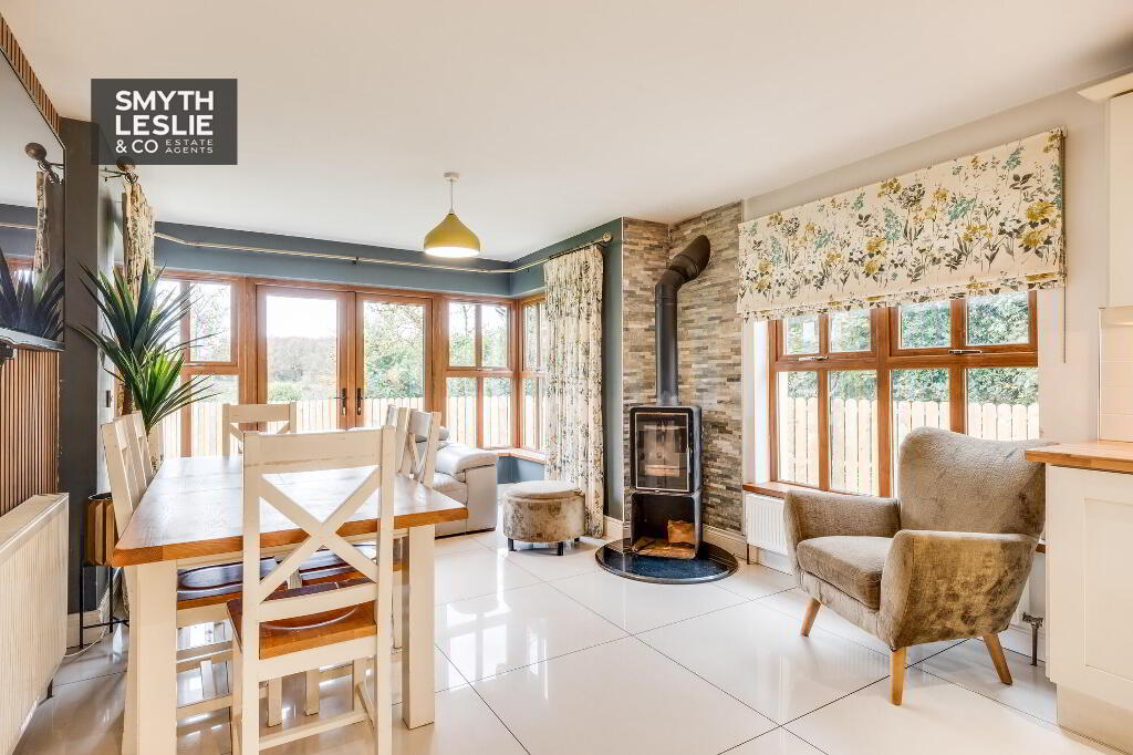 Occupying a deceptively spacious site, the residence enjoys a sense of privacy and tranquillity, enhanced by a mature woodland backdrop that forms a beautiful natural setting. The gardens have been carefully laid out to complement the home’s design, offering attractive outdoor family space. Situated within a lovely village location, the property benefits from the charm and community of its rural surroundings while remaining within easy reach of nearby towns, schools, and essential amenities. This beautiful home truly embodies the best of both worlds, modern living with the convenience of town and country close at hand.