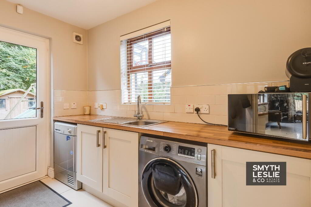 Fitted units, plumbed for washing machine, s.s.sink unit, tiled floor, PVC exterior door with glazed inset.