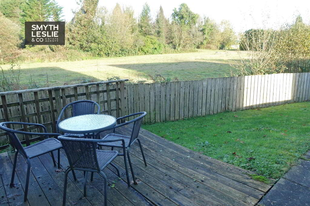 The property is set on easily maintained grounds, occupying an elevated position that enhances its overall outlook. A tarmac driveway provides convenient off-street parking and leads to a neatly kept front lawn, offering a welcoming approach to the residence. The rear offers a private garden with a decking area accessed from the dining room.