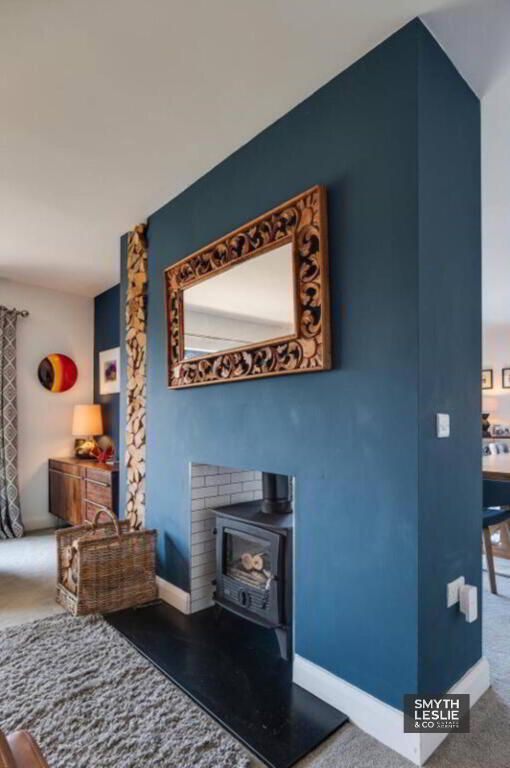 Contemporary style log burning stove.