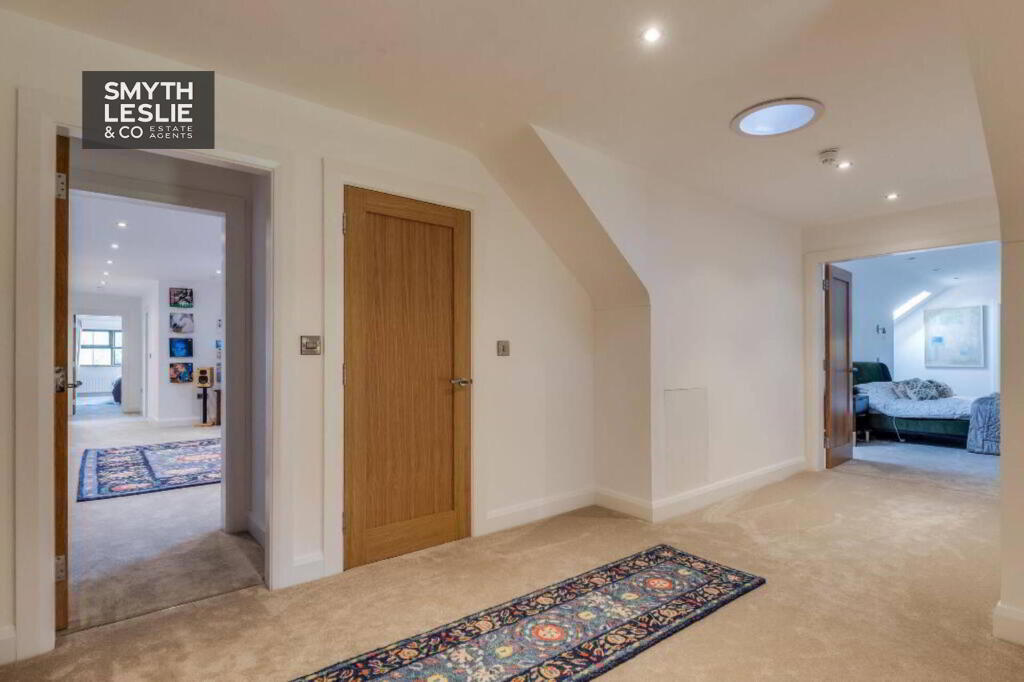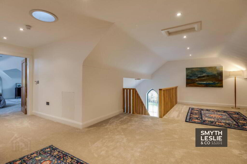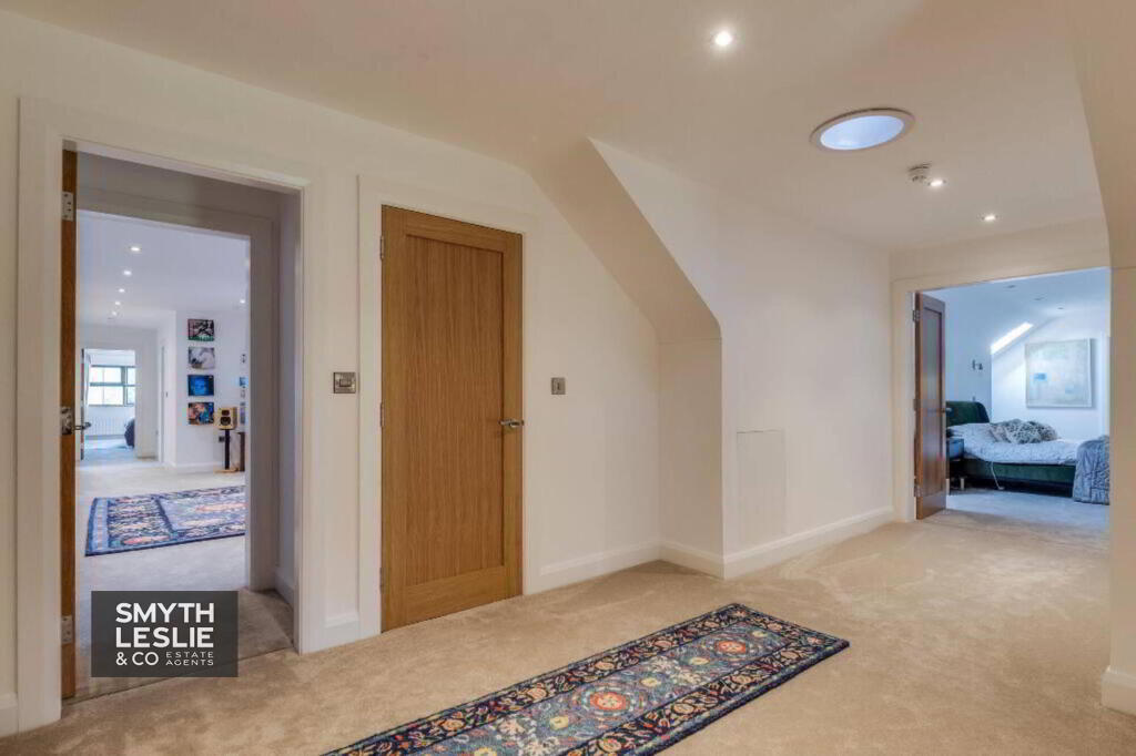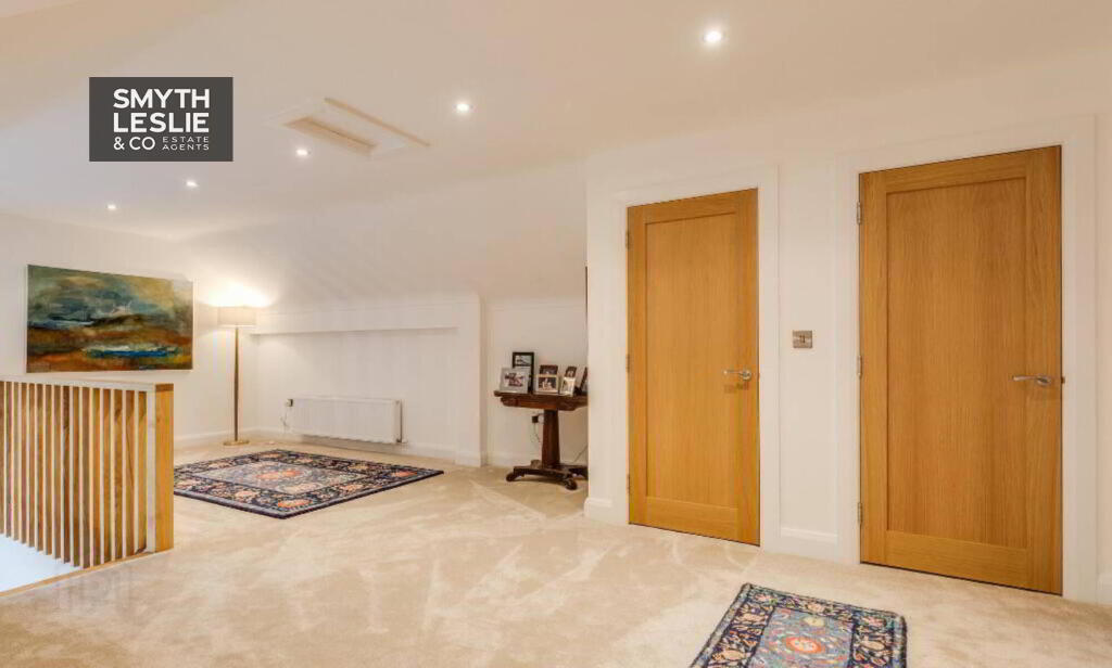 Double doors to Landing, Lounge area with views towards Culciagh, recessed lighting.