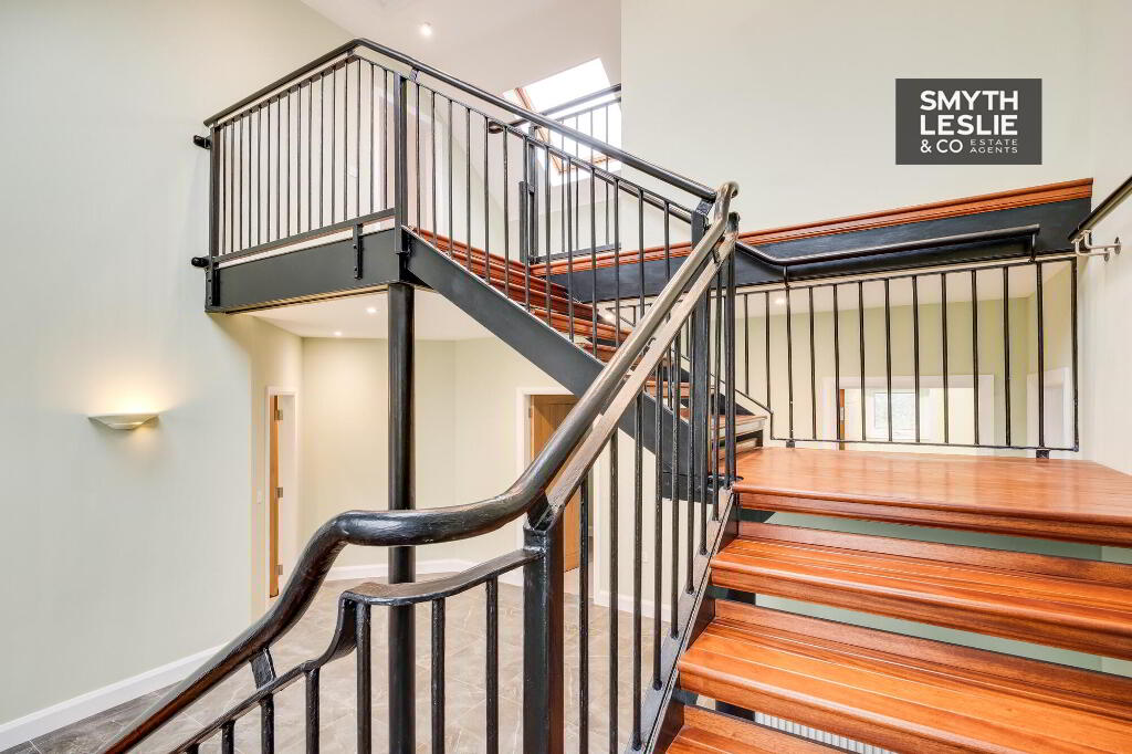 A striking focal point of the home is the bespoke wrought iron staircase, showcased alongside custom joinery crafted from exquisite West African Mahogany set in a light filled entrance hall entered from an eye-catching stone clad entrance. The open plan kitchen is fitted with classic shaker style cabinetry and a range style cooker, while an adjoining utility room enhances day to day practicality. Extending to 2,224 square feet, the residence benefits from a newly installed heating system, certified full re-plumbing, and a certified electrical rewire, delivering reassurance and high-quality efficiency for the new owner.