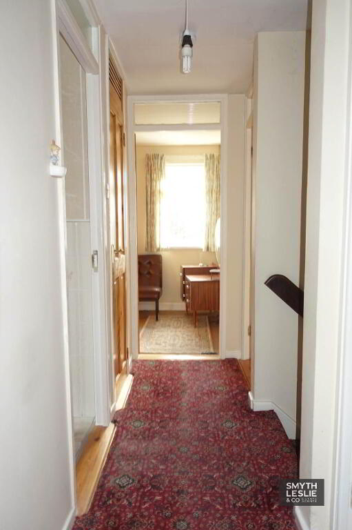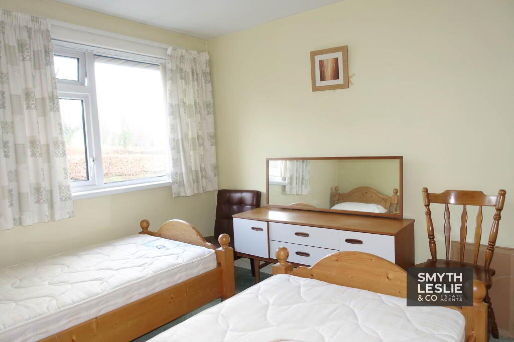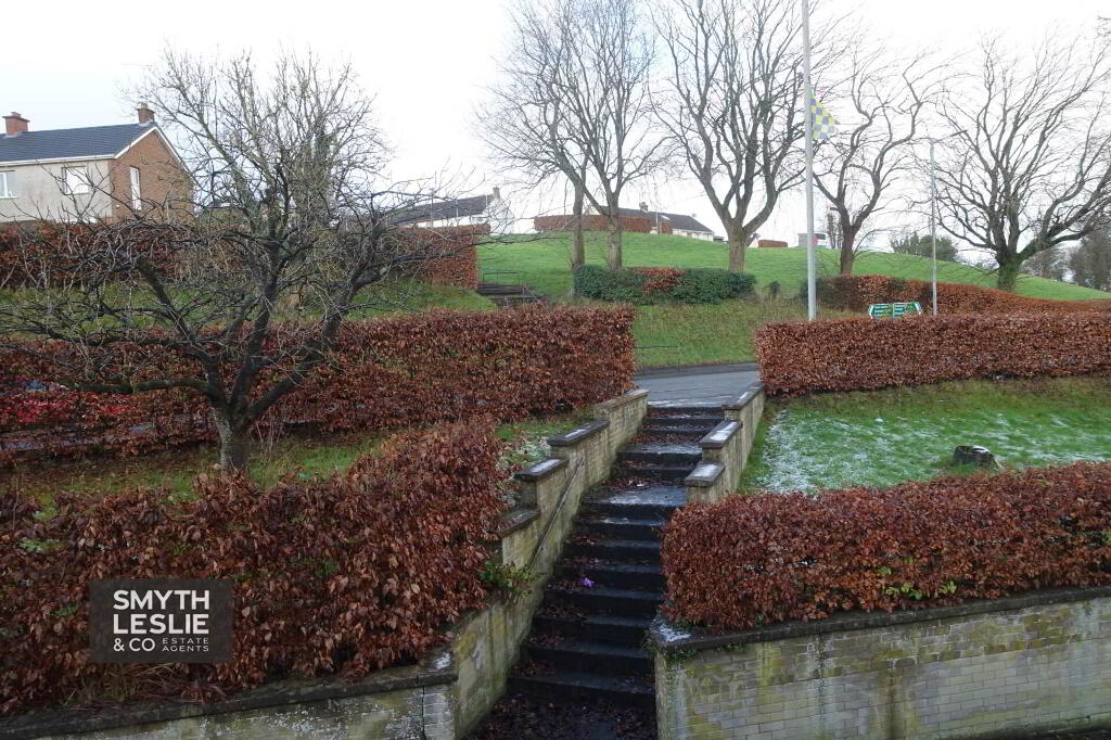 The grounds have been thoughtfully maintained and complement the residence with a strong emphasis on practicality, privacy and maturity. To the rear, the property benefits from an ample parking area with positive and convenient accessibility, well suited to everyday family use. To the front, a mature garden is framed by established hedging, creating an attractive and welcoming approach, while a pedestrian walkway provides direct and convenient access towards Enniskillen town centre. The entire setting is further enhanced by a backdrop of mature trees, which adds a valuable sense of seclusion and reinforces the property`s private yet central position.