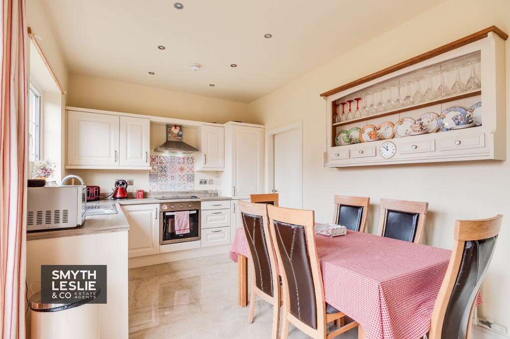 This impressive semi-detached residence offers a lovely and well appointed interior, thoughtfully centred around a bright and modern kitchen and dining area that forms the heart of the home. The accommodation is further enhanced by warm, tasteful décor throughout, creating a welcoming and comfortable living environment. Occupying a spacious site and enjoying an attractive outlook overlooking the Green, the property is ideally positioned within a popular and well established residential area. Its convenient location provides ease of access to Enniskillen town centre, a wide range of local amenities, and the main road network, making it particularly well suited to modern living expectations.