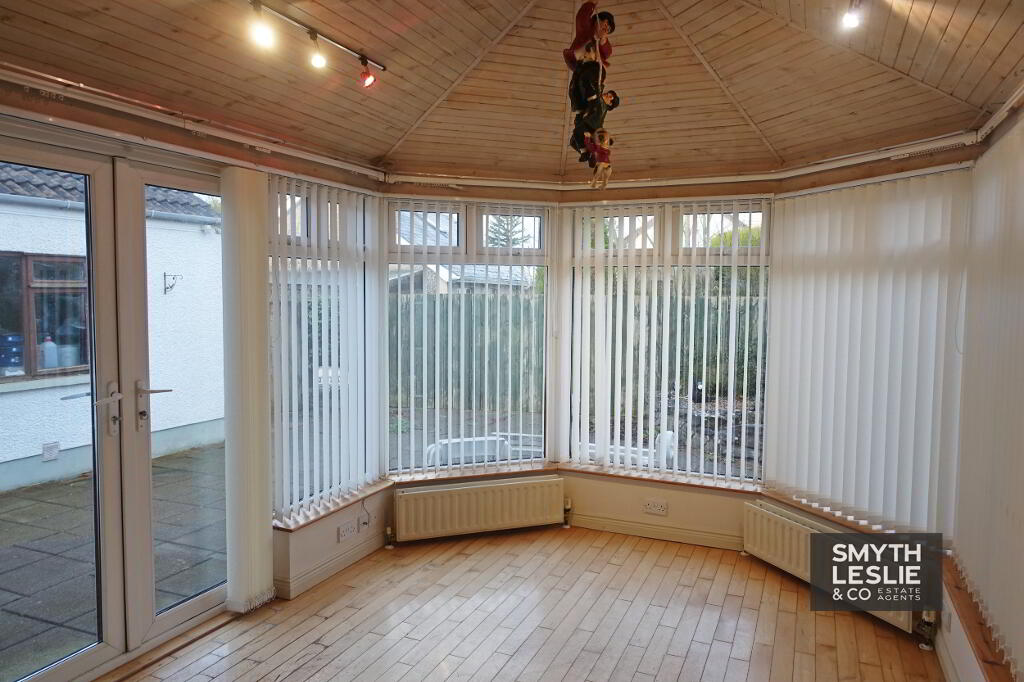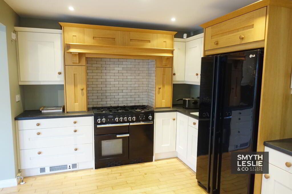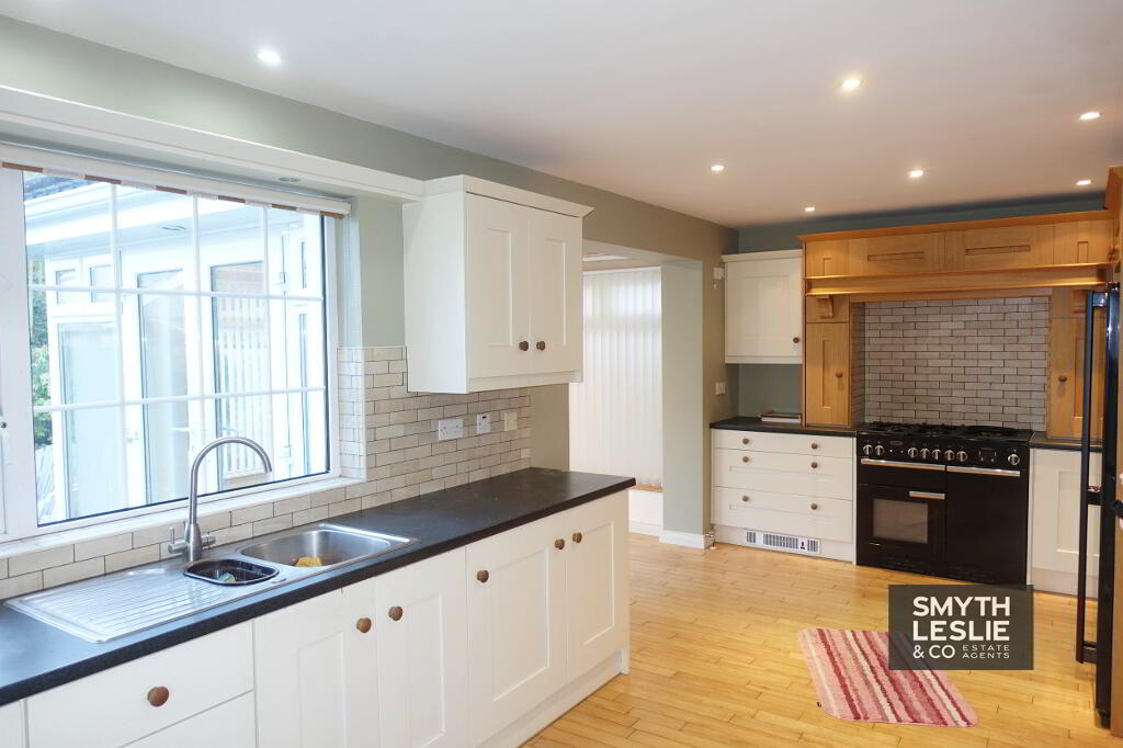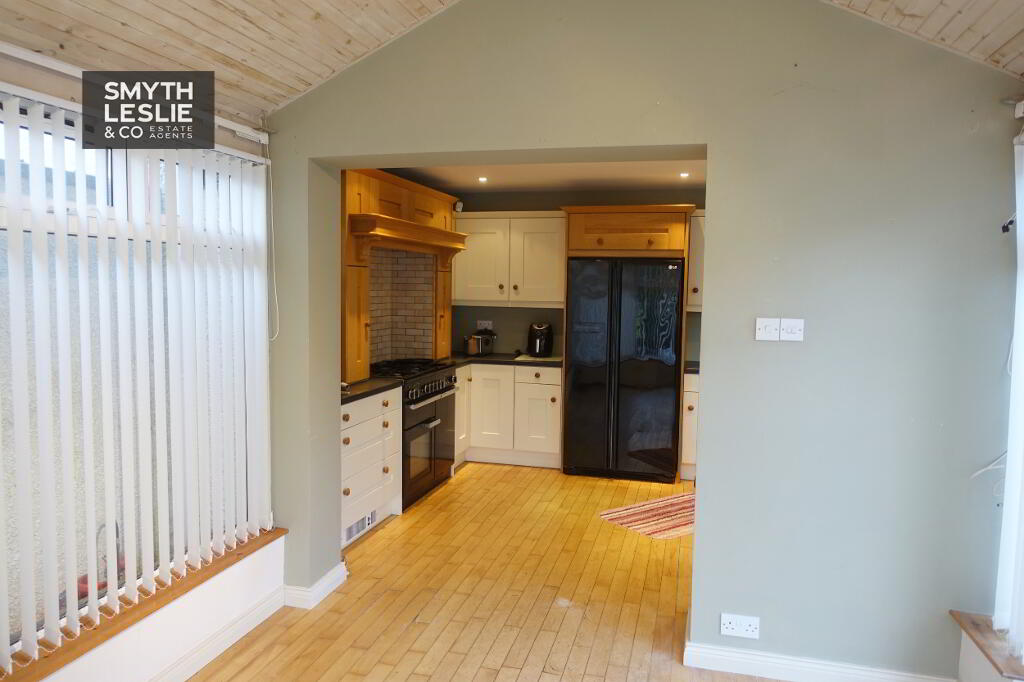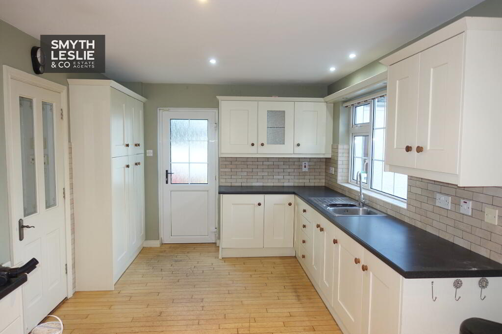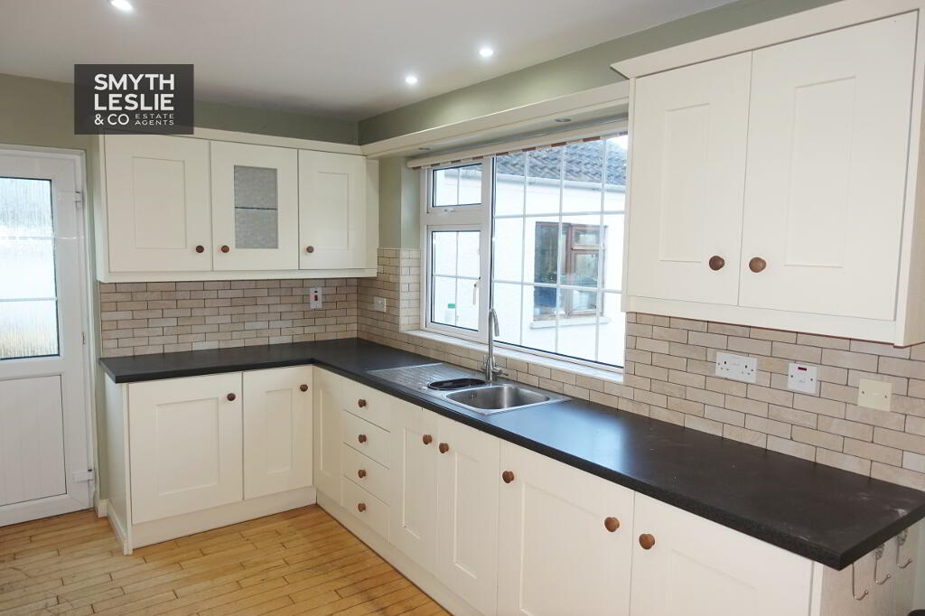 A lovely semi-detached residence that has been thoughtfully extended to create an exceptional open plan kitchen and sun lounge, forming the natural focal point of the home and providing a bright, welcoming space for everyday family living and entertaining. The property offers three well proportioned bedrooms, each fitted with high-quality built in bedroom furniture, and is further enhanced by its choice corner site position with detached garage and a private, well enclosed garden ideal for outdoor enjoyment. Set within a mature and well established residential area, the property enjoys the added convenience of being within a comfortable short walk of Irvinestown’s Main Street and a wide range of local shops, schools and amenities, making it an ideal home for families and those seeking town convenience in a settled setting.