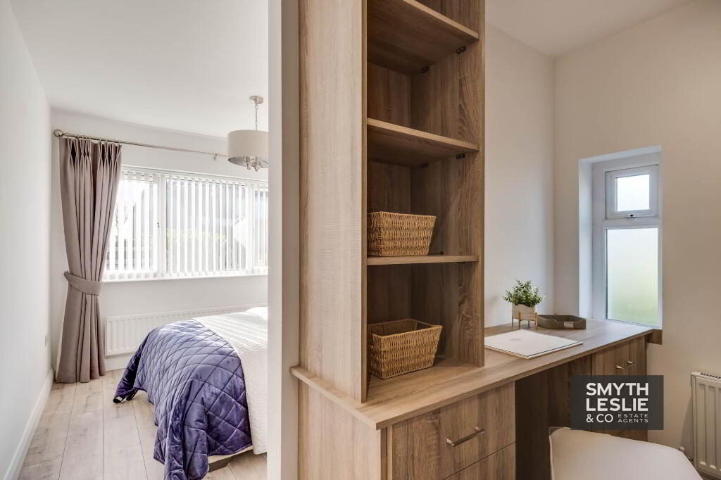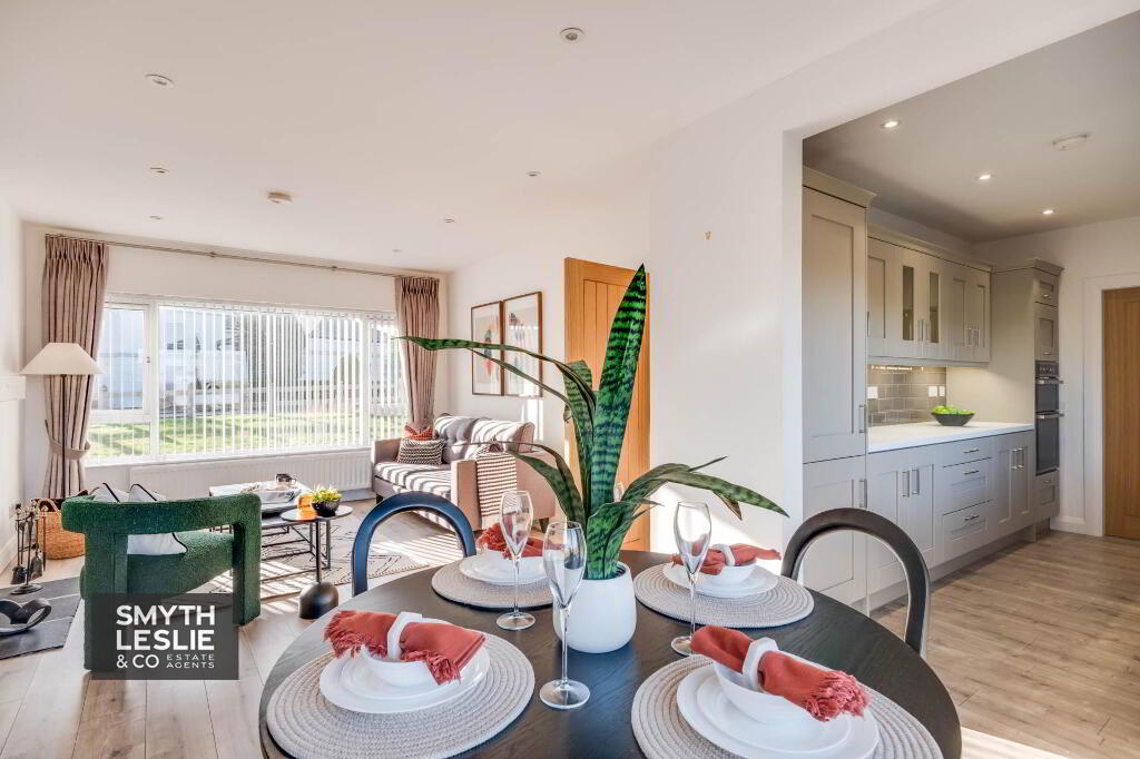 This beautifully presented single-level residence is accessed via an inviting entrance hall, leading into a bright and modern open-plan living area. This light-filled space opens seamlessly onto a private, enclosed rear garden, overlooking Enniskillen`s townscape. The accommodation is further enhanced by an impressive master bedroom with en-suite facilities. Externally, the property benefits from a generous parking area, all set within a quiet and mature setting.