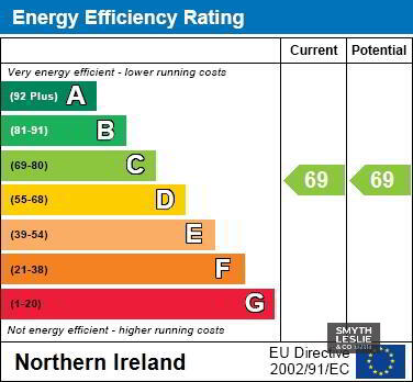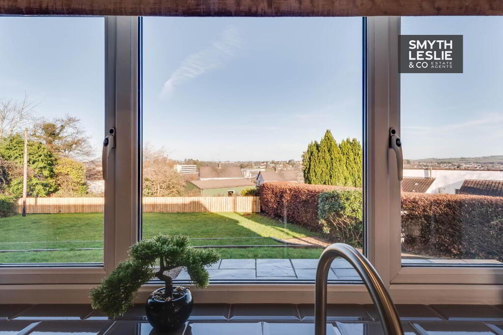 A tarmacadam driveway provides generous off-street parking, complemented by a garden to the front. To the rear, a raised patio area enjoys attractive town views, while the expansive garden offers exceptional potential to create a superb outdoor living space in the heart of Enniskillen.