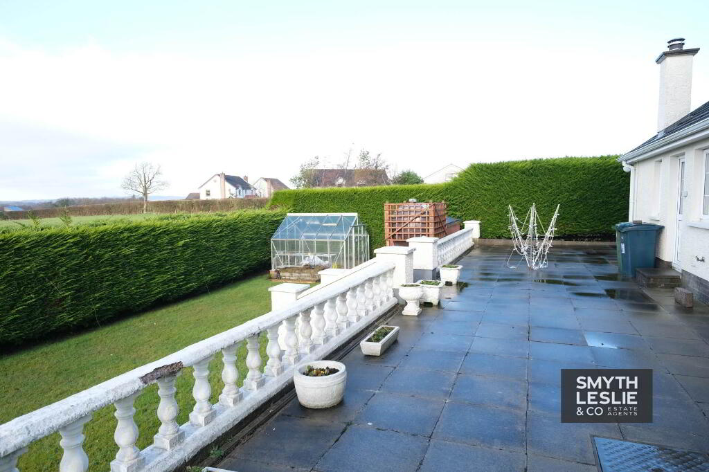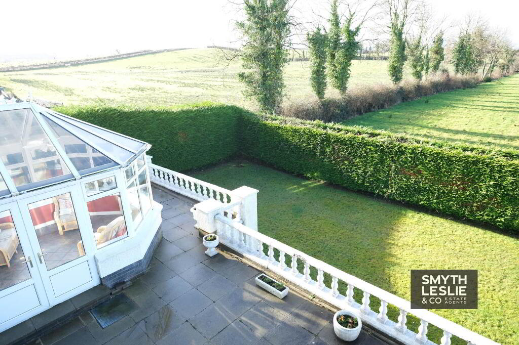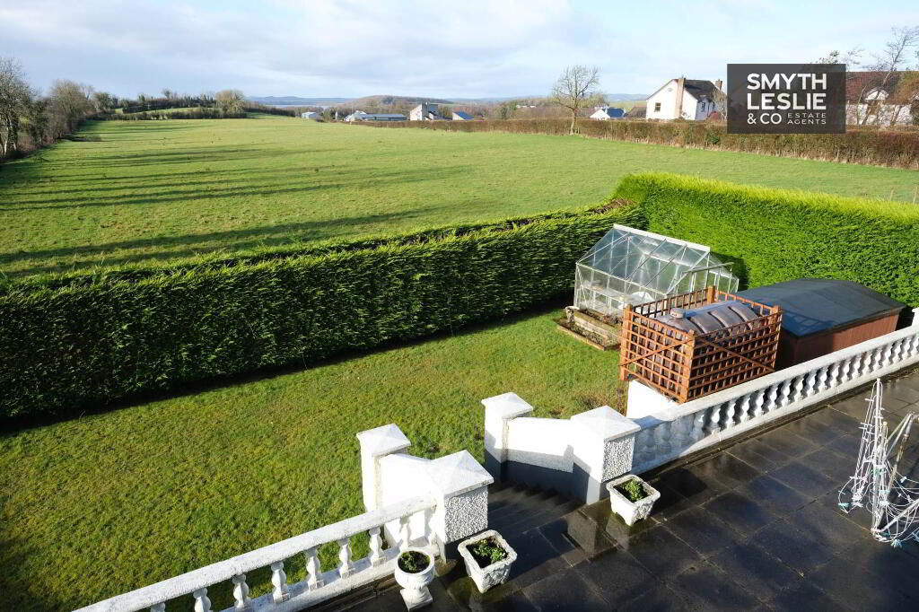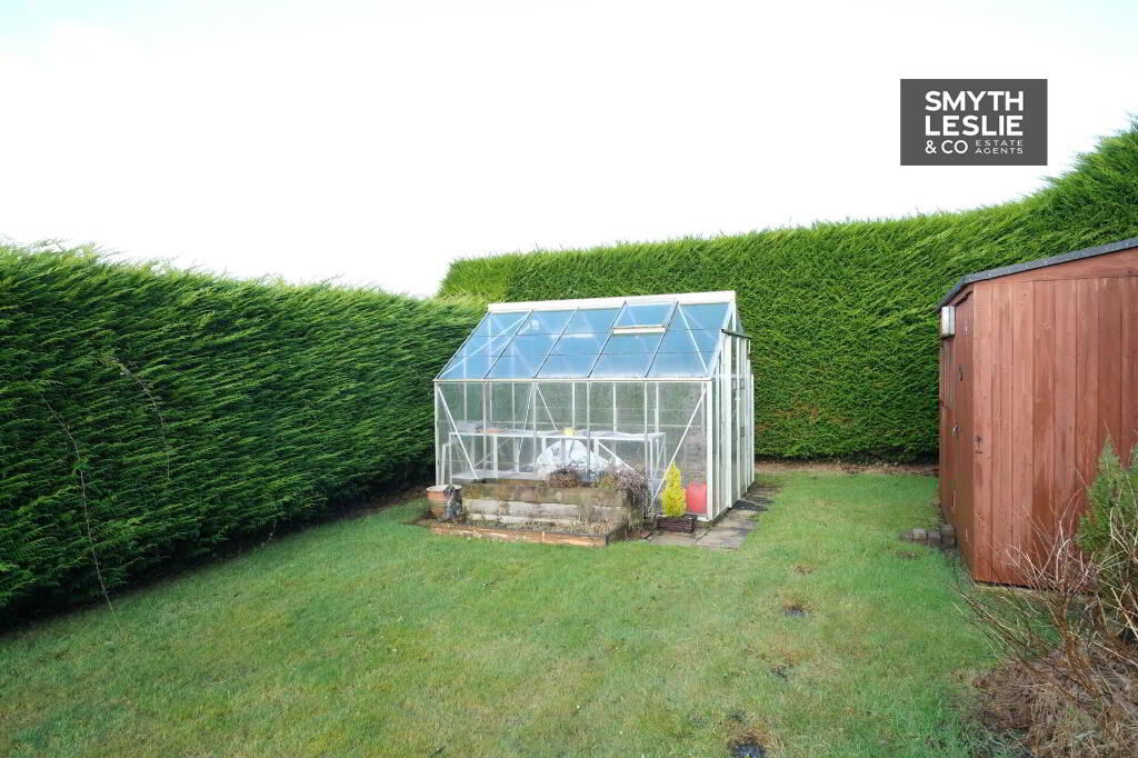Extensive mature gardens to front, side and rear, mainly in lawn. Paved area to rear with ornamental walling and steps down to lower-level lawn. Garden shed and greenhouse to rear with mature hedging ensuring maximum privacy. Tarmac driveway from gated entrance to front with excellent vehicular parking.