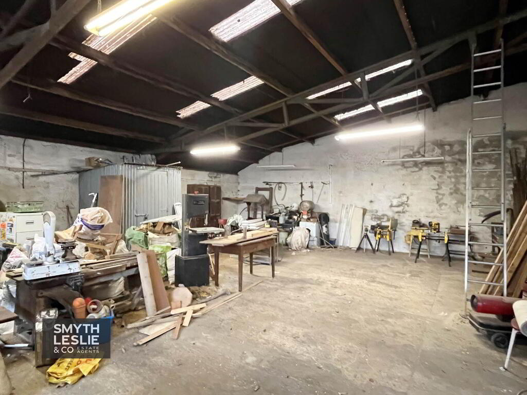Store/Garage - 26'9" (8.15m) x 17'7" (5.36m) : 470 sqft (43.68 sqm) including toilet compartment. Water and electricity connected.