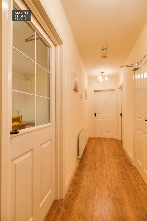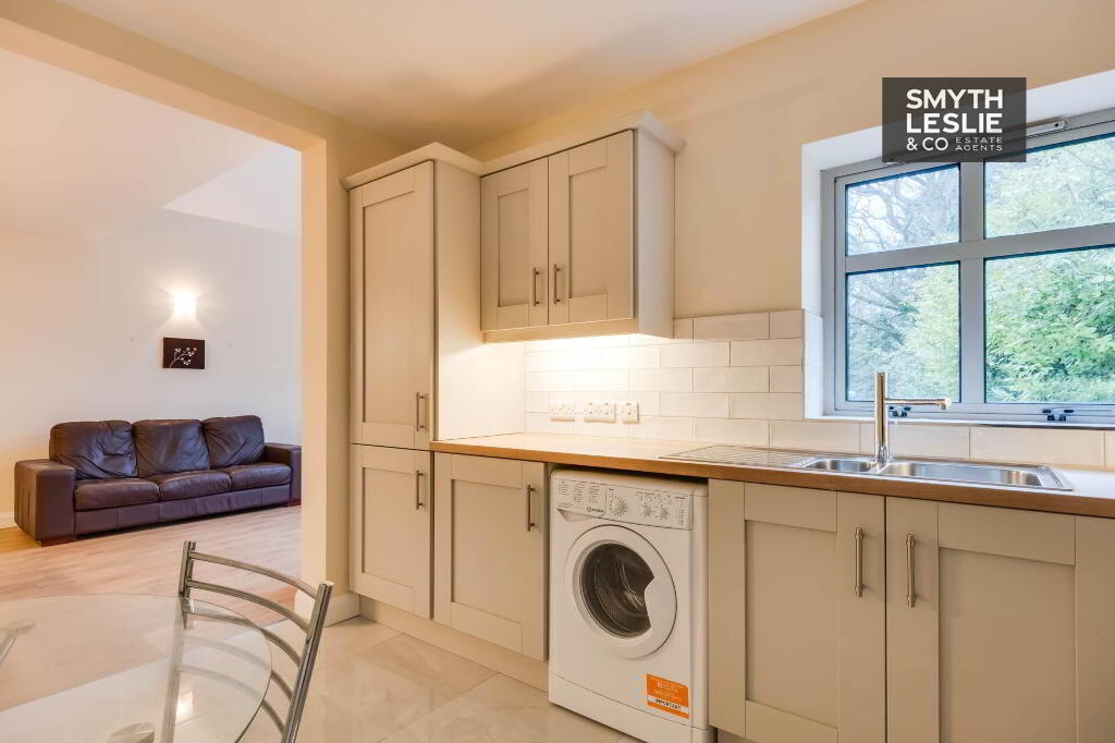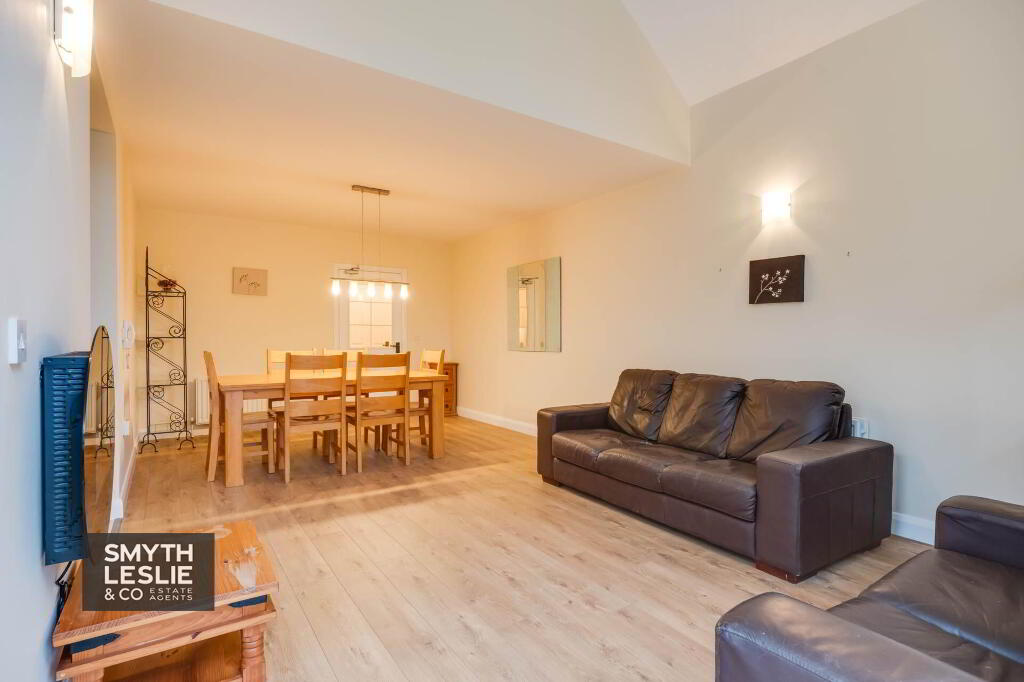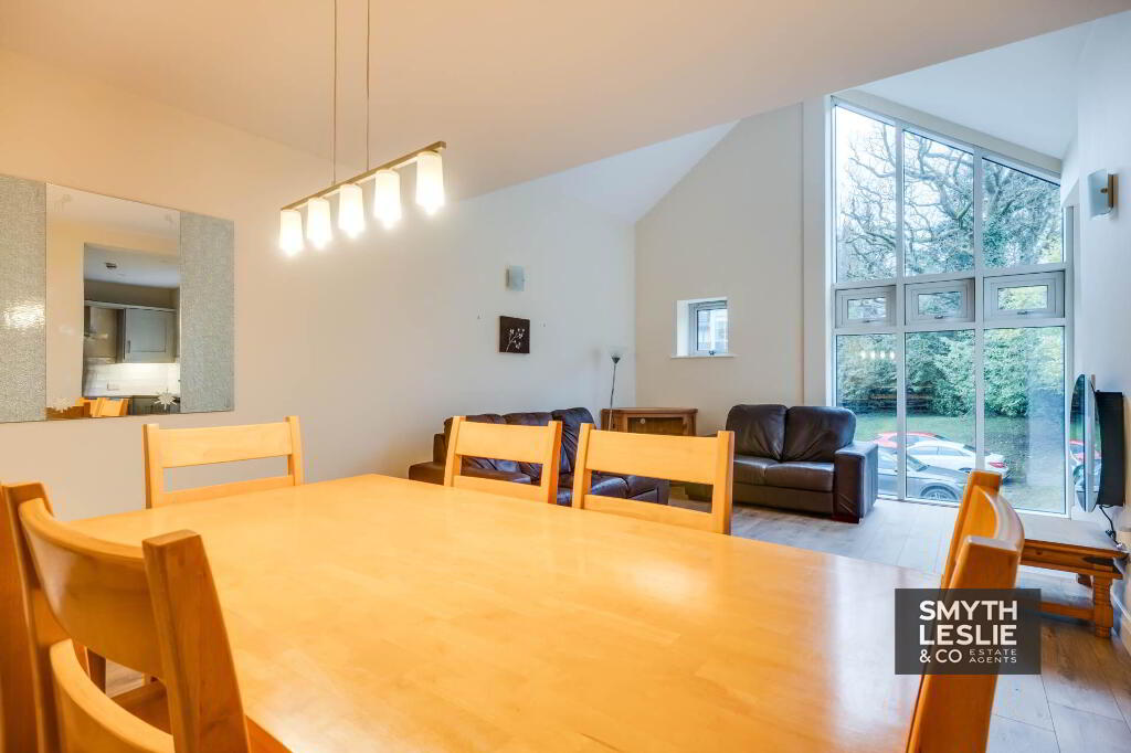 An excellent and attractively appointed first floor apartment set within a secluded and increasingly popular residential location on the edge of Enniskillen, conveniently positioned just off the A4 Belfast Road and within a pleasant walk of the Killyhevlin Hotel and the beautiful grounds of the Castle Coole National Trust Estate. Recently refurbished, the apartment offers a stylish and modern interior centred around a contemporary kitchen that opens seamlessly onto a spacious open plan lounge and dining area. This impressive living space is enhanced by a vaulted ceiling and a large glazed section that provides access onto a private veranda, allowing natural light to flood the interior while enjoying views of the surrounding mature trees that create a peaceful and natural setting, together forming a most appealing and comfortable home.
