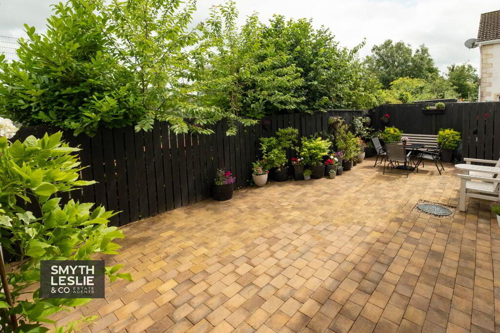 Mature and brickwork paved garden and tarmac parking area. Brickwork paved garden to rear providing excellent all weather garden space. Gated access to rear providing access to the local park and amenity space, as well as a convenient walk to local amenities. Rear garden bounded by mature trees and shrubs affording a lovely backdrop.