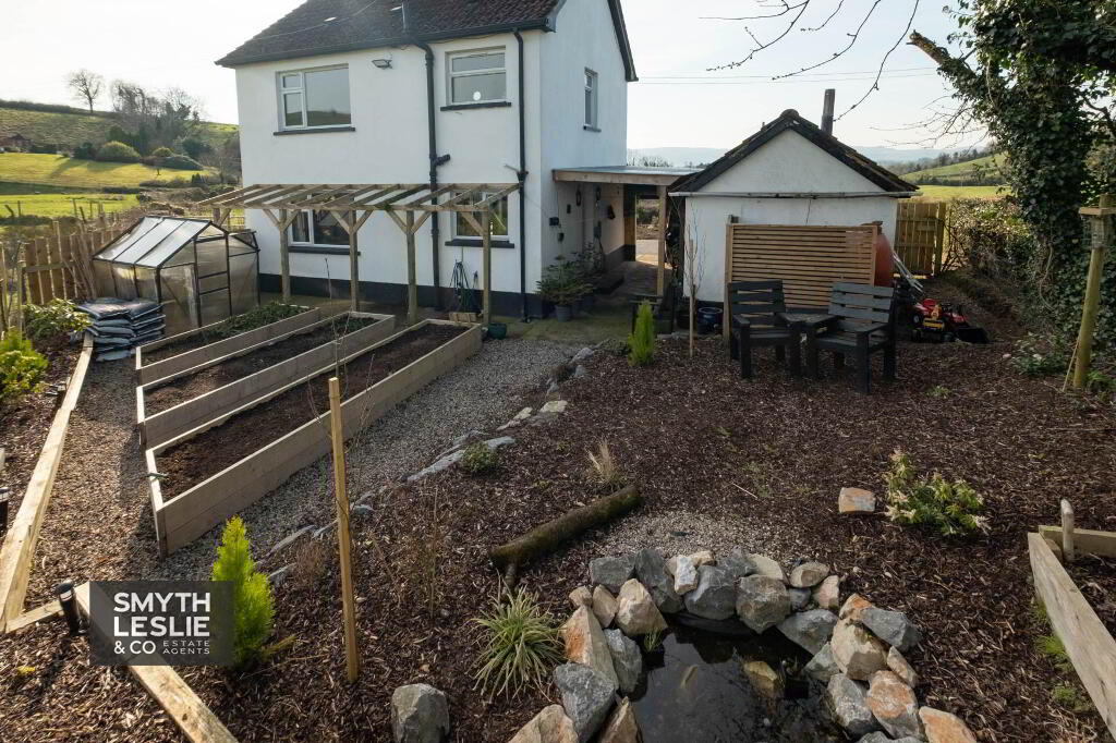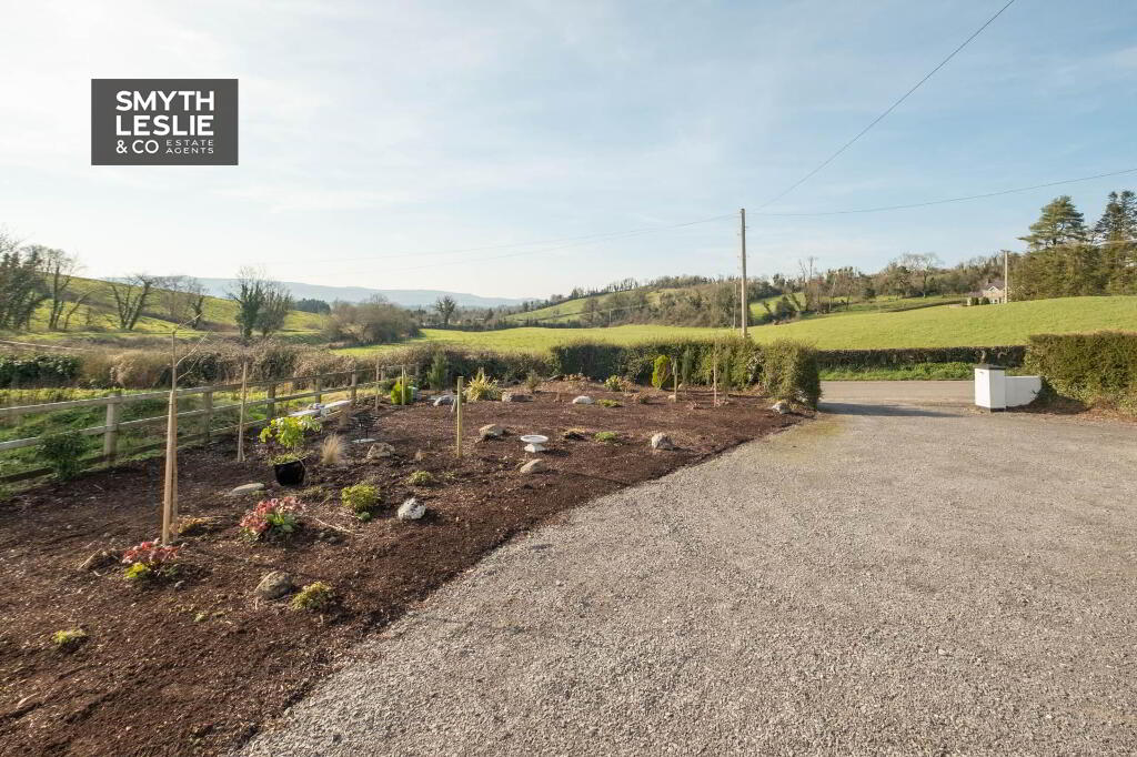 Positioned just off the main Derrygonnelly Road and accessed via the Drumboory Road, the property is approached by a pillared entrance to a spacious parking area with landscaped gardens to the front, creating an attractive and welcoming setting. The grounds are further complemented by a garage providing excellent storage, along with a recently added covered area suitable for a variety of uses. To the rear, the garden has been thoughtfully landscaped to incorporate a range of features, including a delightful pond with running water feature, and a well maintained vegetable garden with neatly arranged raised beds, all combining to provide a highly enjoyable and practical outdoor space.