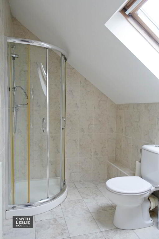 En-suite - 8'0" (2.44m) x 5'7" (1.7m) White suite, step in shower cubicle with thermostatically controlled shower, fully tiled.