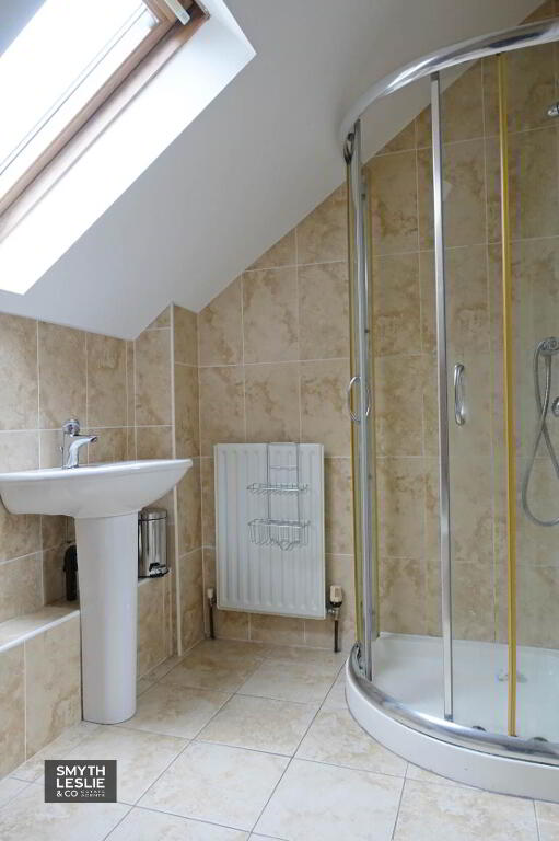 Bathroom - 9'10" (3m) x 5'6" (1.68m) White suite, step in shower cubicle with thermostatically controlled shower, fully tiled.