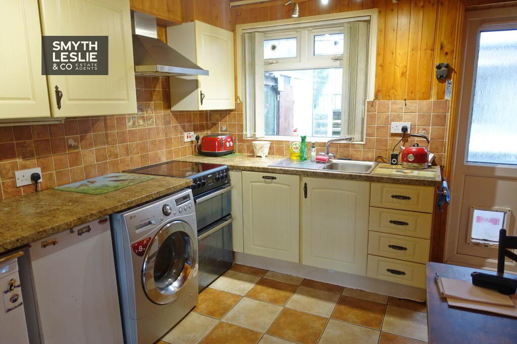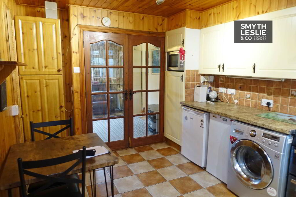 Fitted Kitchen units, stainless sink unit, OFCH boiler, plumbed for washing machine, electric cooker, tiled floor and partially tiled walls, panelled ceiling, PVC exterior door.