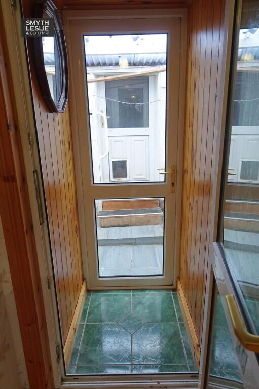 PVC exterior door, tiled floor, panelled ceiling.