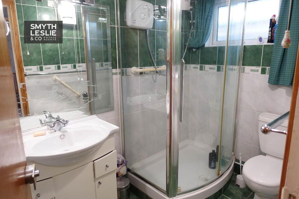 Fully tiled, electric shower with cubicle, whb and toilet.