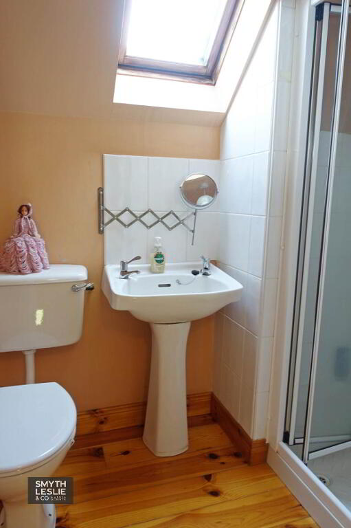 White suite, wet room shower with electric shower, fully tiled. (7`7 x 5`6 & 3`4 x 2`)