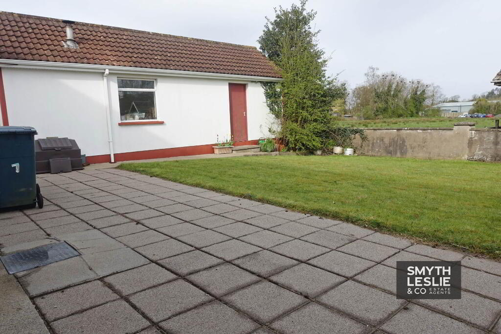 The property is set on spacious and well maintained grounds, with gardens to both the front and rear laid out in open lawn, providing a most attractive and usable outdoor space. The rear benefits from a paved patio area, ideal for everyday enjoyment and outdoor seating, while the front and side offer a generous parking area that is further enhanced by the inclusion of a car port. In addition, a large detached garage provides excellent storage or workshop potential, completing the overall practicality of this appealing home.