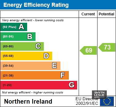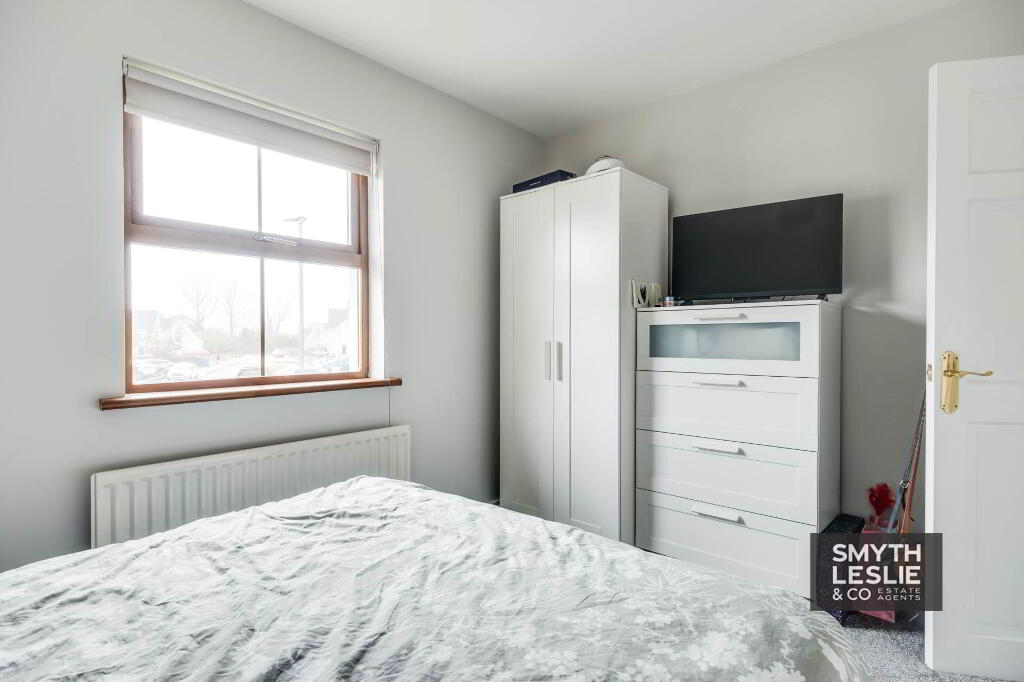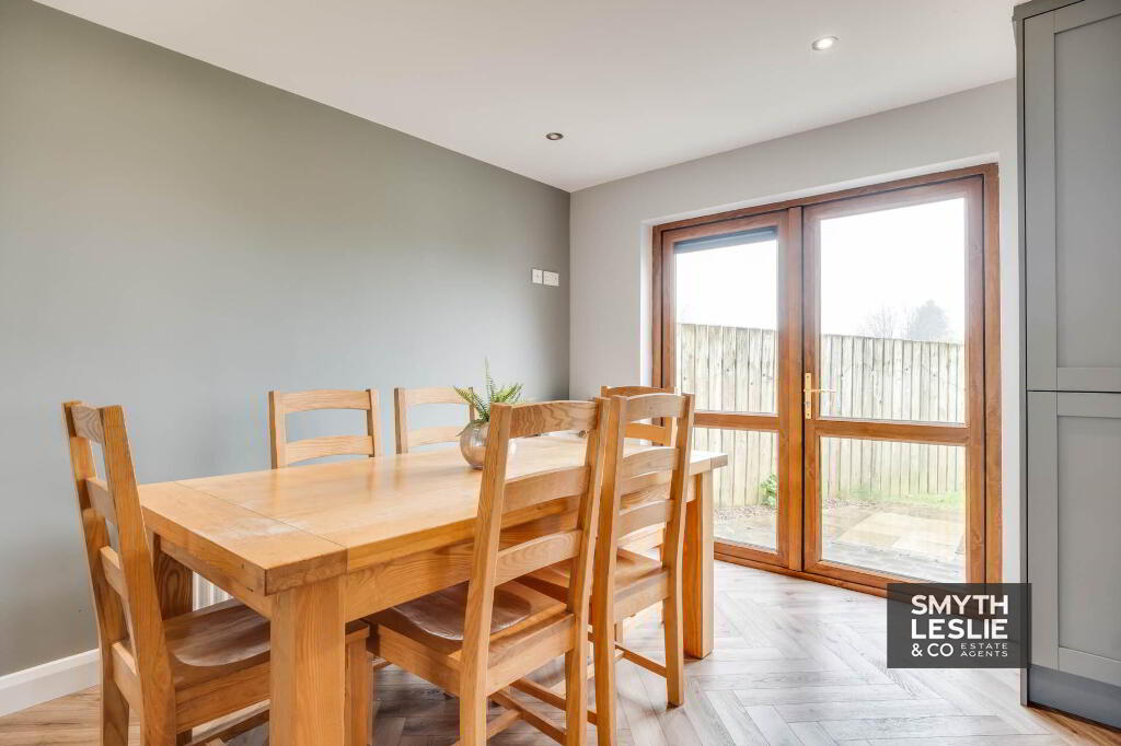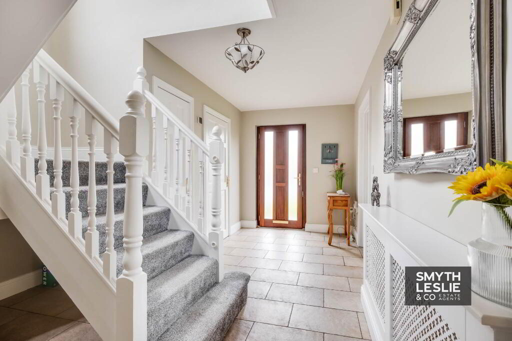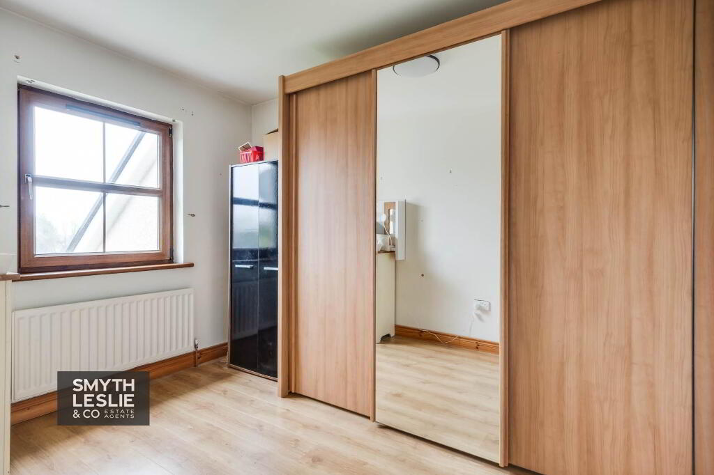 Positioned on a corner site, the property benefits from spacious parking to the front, providing both practicality and ease of access. To the rear, the grounds are thoughtfully laid out to offer an easy to maintain, south facing garden, featuring a paved patio area ideal for outdoor relaxation, alongside a lawn that overlooks farmland to the rear. The garden further enjoys attractive views towards Culciagh Mountain, enhancing the sense of connection to the surrounding landscape and countryside.