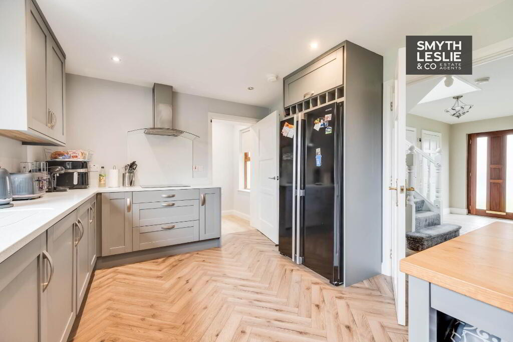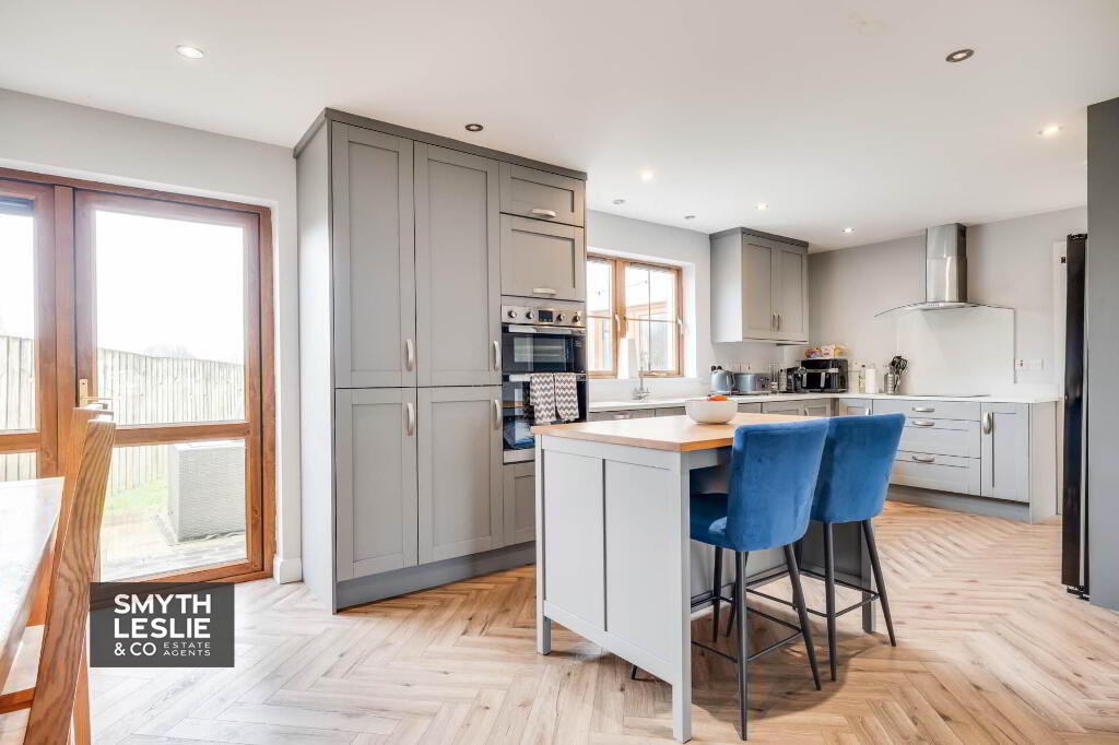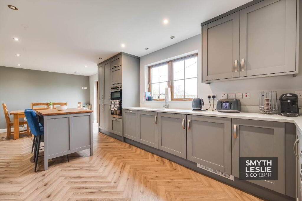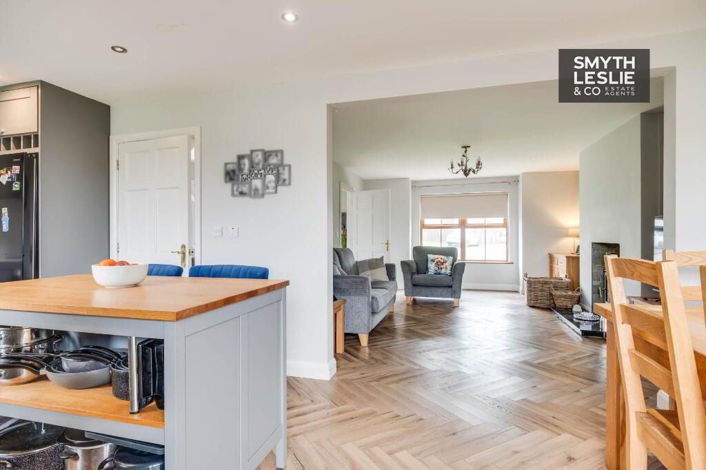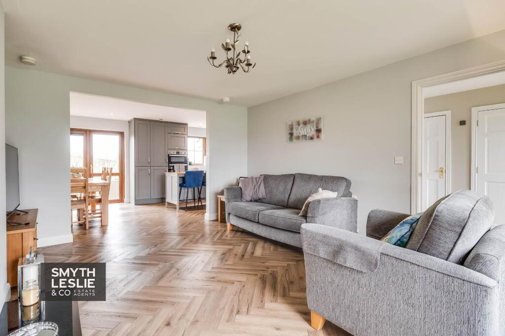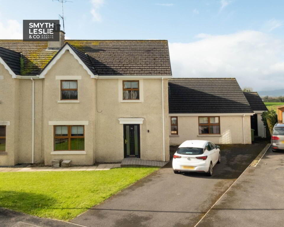 An exceptional semi detached residence that has been thoughtfully and significantly extended to create a superb range of accommodation, ideally suited to modern family living. The interior is centred around an impressive open plan arrangement incorporating lounge, kitchen and dining area, all finished to an eye catching standard and designed for both everyday comfort and entertaining. To the rear, an additional family room enhances the living space, opening directly onto a south facing garden that enjoys delightful views towards Culciagh Mountain. The property offers an excellent range of bedroom accommodation, including 5 well proportioned bedrooms with 2 ensuite facilities, 1 of which is conveniently located on the ground floor. The extension has been carefully designed to provide the option of a self contained annex, offering flexibility for multi generational living or guest accommodation. This is a truly unique home, set within a popular village location close to the main road network, presenting a wealth of possibilities for the modern family.