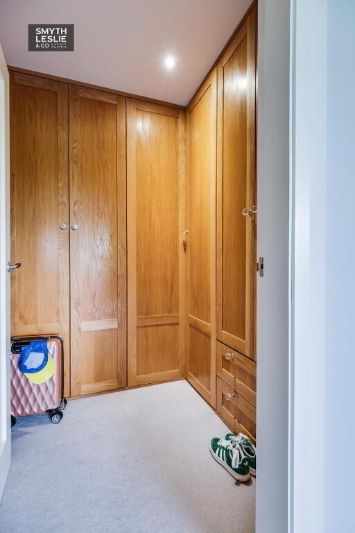 Large cloaks cupboard, tiled floor, recessed lighting.