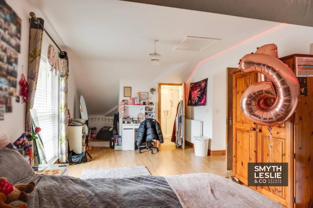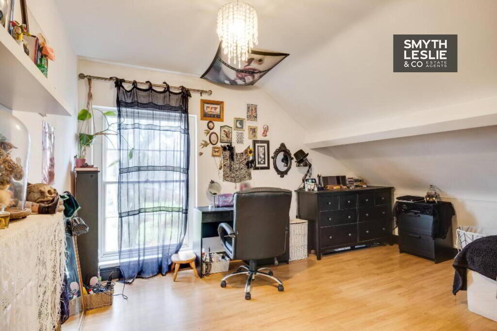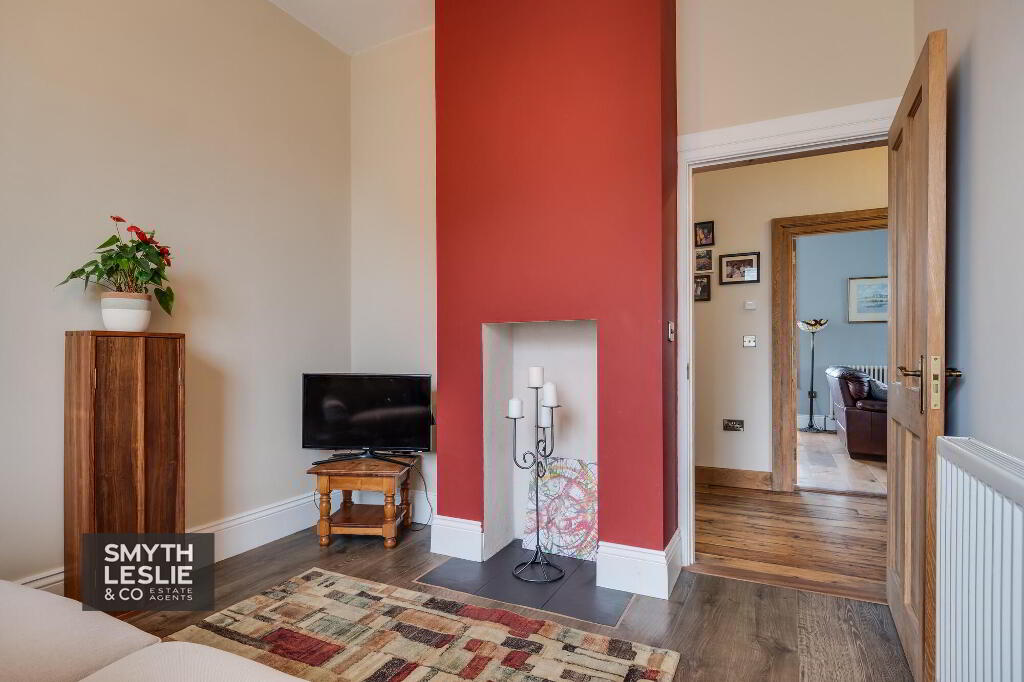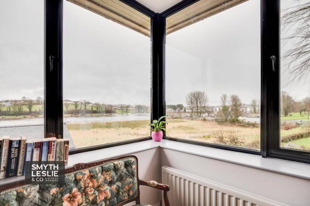 Feature corner window with views towards the River Erne & local townscape, laminate flooring.