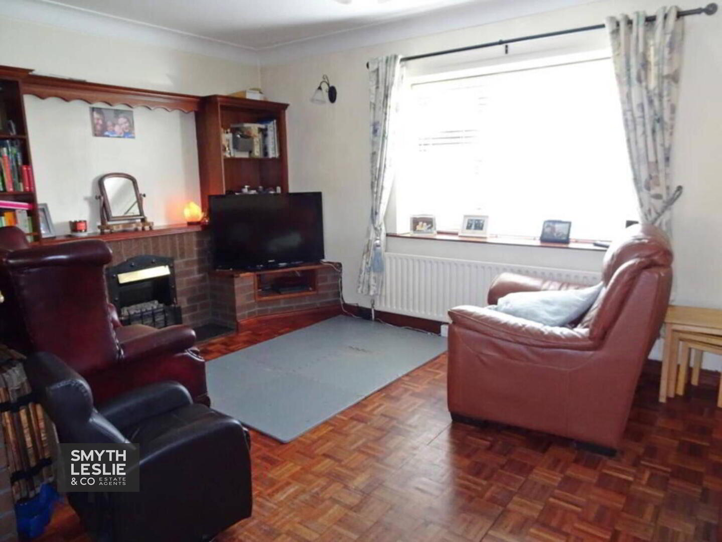 Lounge: 15`10 x 10` Brickwork fireplace surround, block wood floor,ceiling cornice and centrepiece.