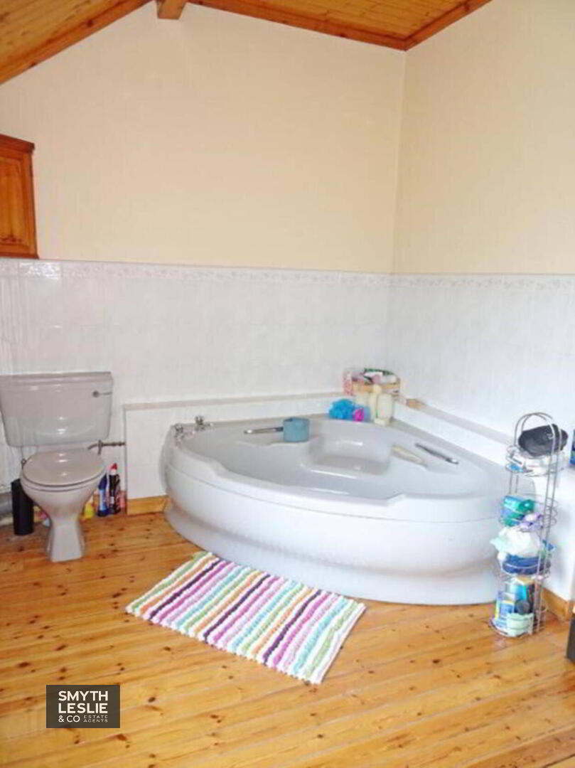 Shower Room: 5`9 x 5`8 Wc, whb & step in shower cubicle, thermostatically controlled shower, solid wooden floor, tiled walls, PVC protective cladding to shower, tongue and groove panelling to ceiling.