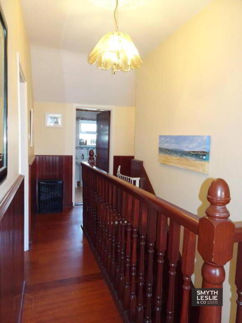 Landing: 20`8 x 5`8 & 4`6 x 2`9 Solid wooden floor, ceiling centrepiece, tongue and groove panelling, hotpress.