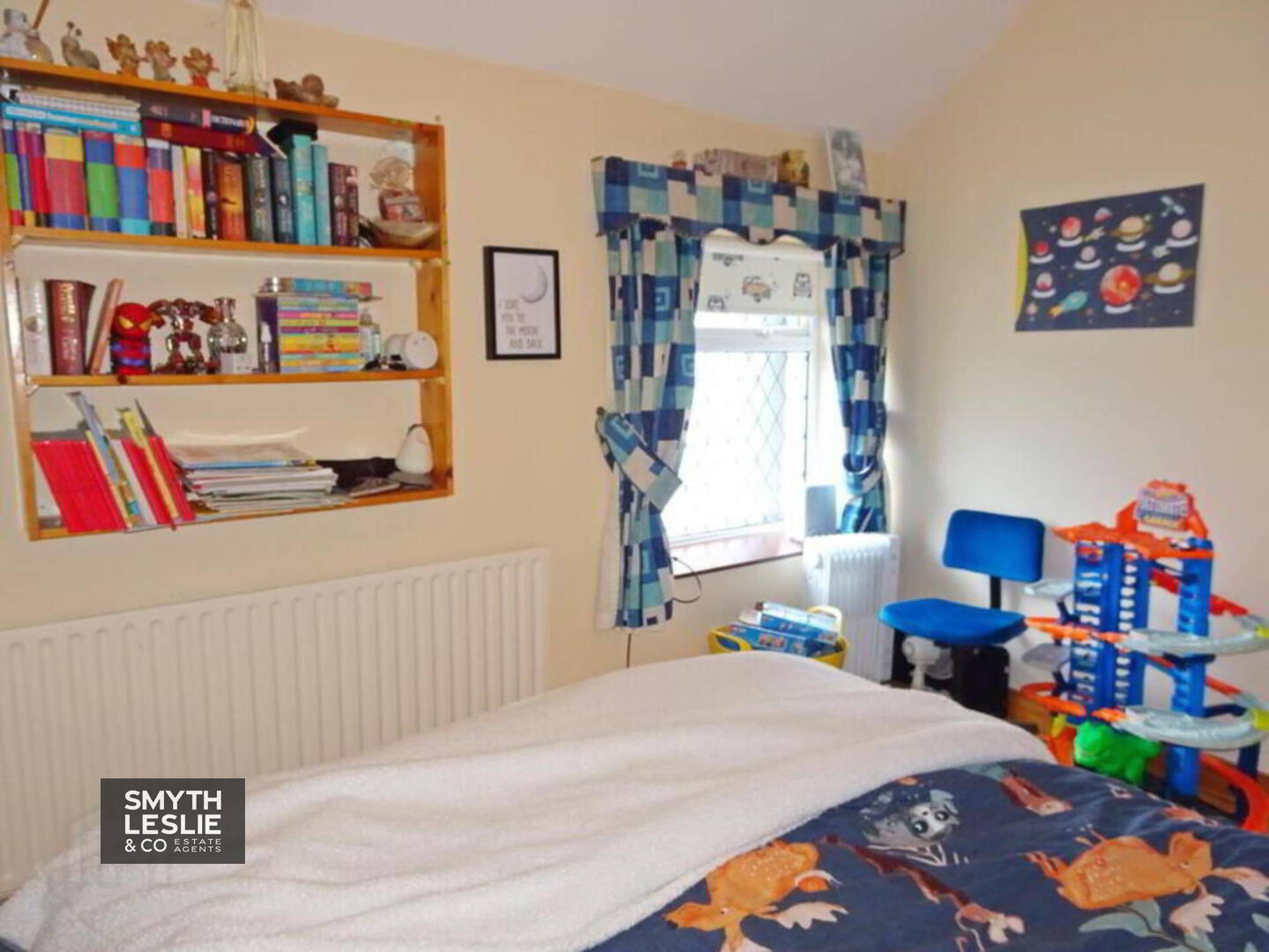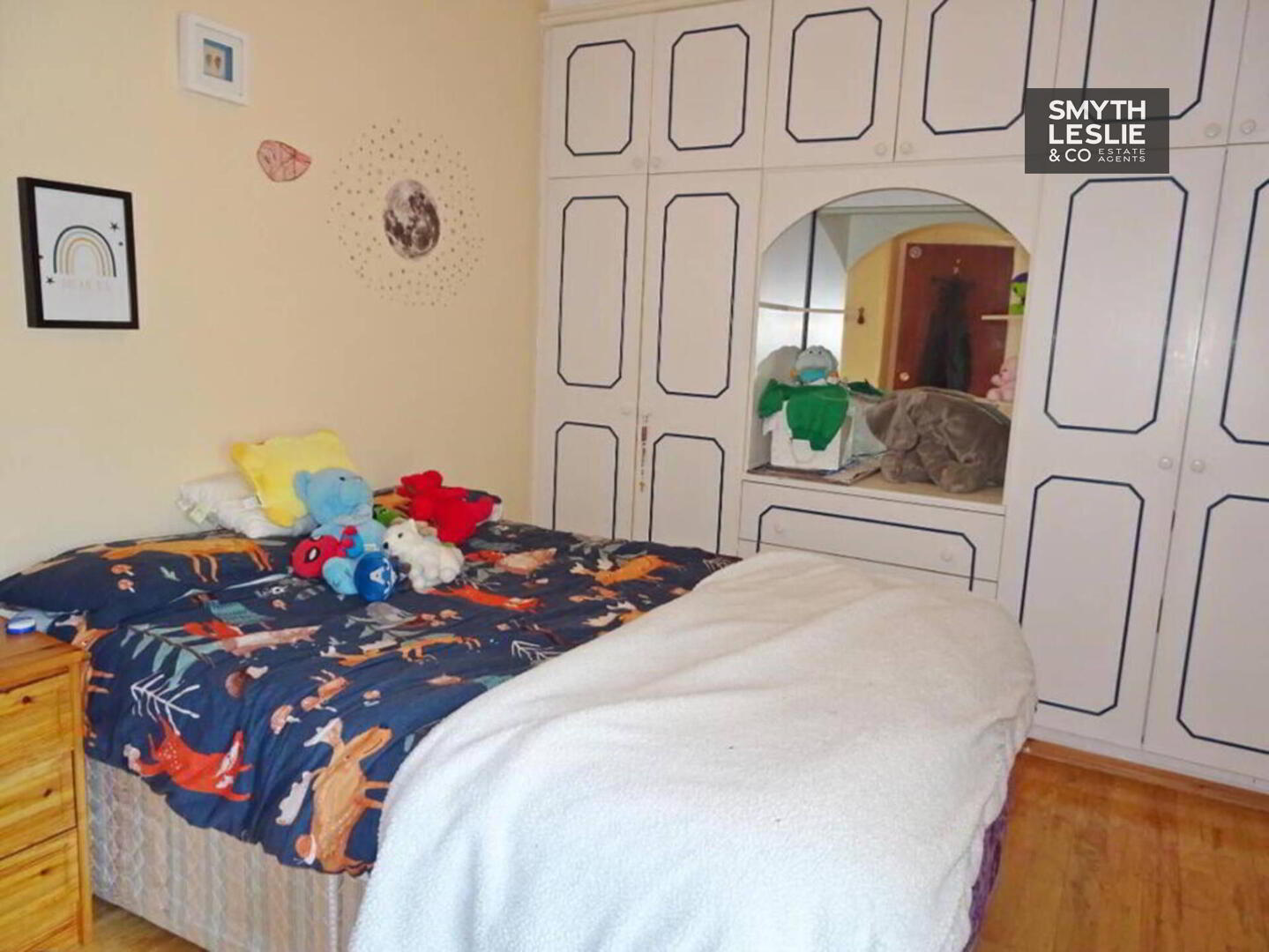 Bedroom (3): 11`4 x 9`2 Fitted wardrobes, wooden floor.