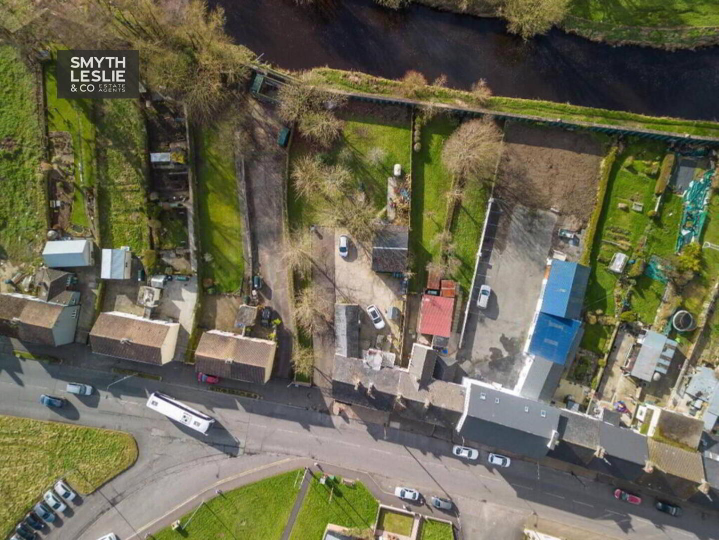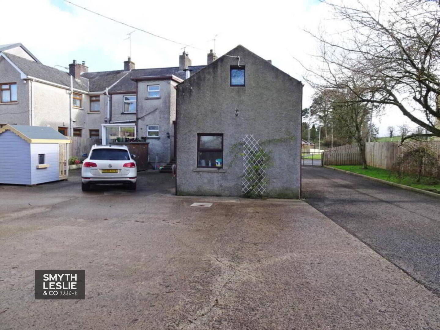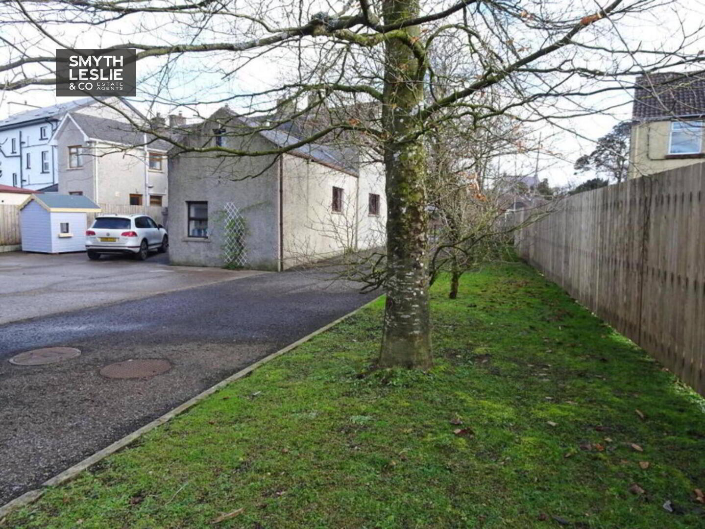 Tarmacadam driveway off Main Street leading to spacious parking area, yard and lawn. Large grounds affording potential for expansion.